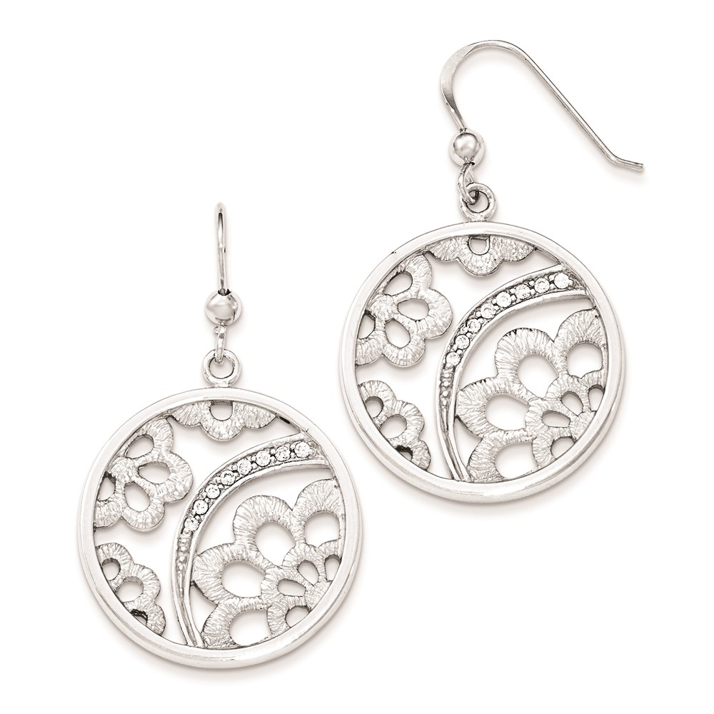 Sterling Silver Rhodium-plated CZ Floral Round Dangle Earrings