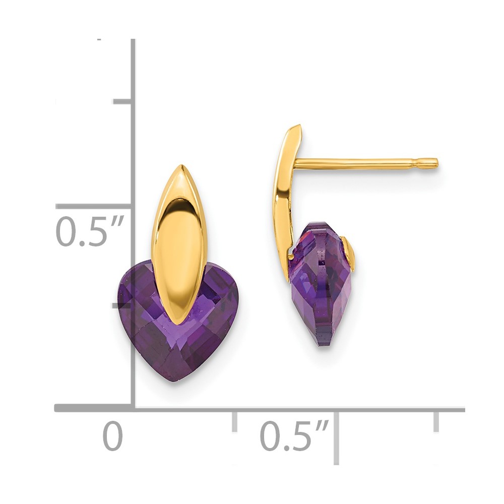 14ky Polished Purple CZ Heart Post Earrings