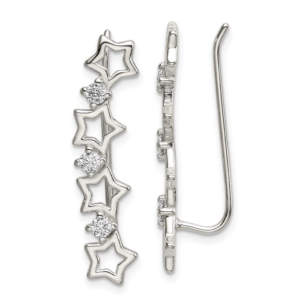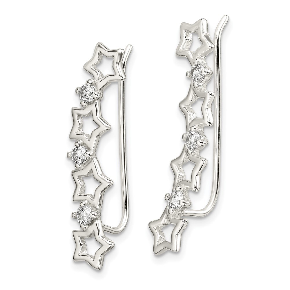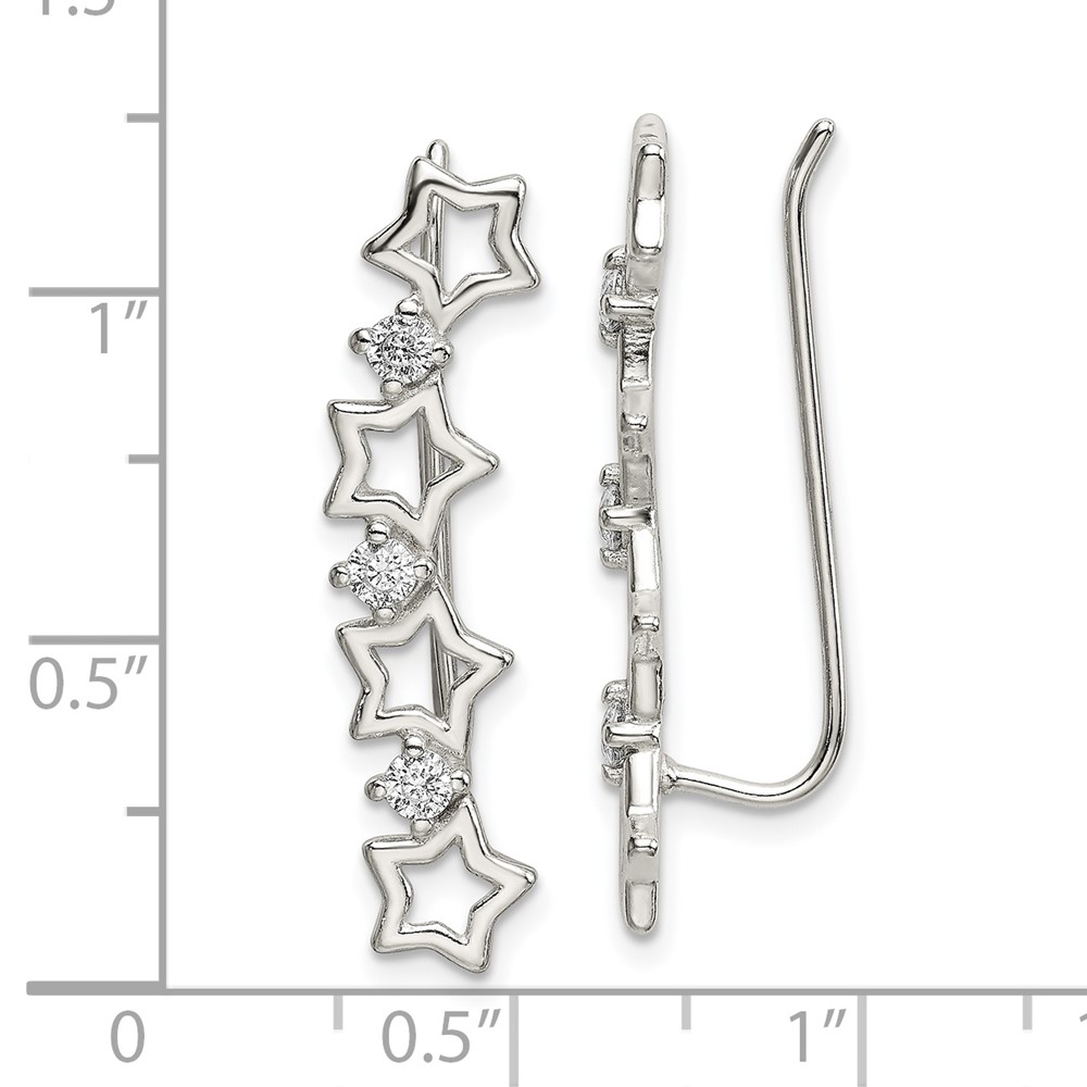 Sterling Silver Polished CZ Stars Ear Climber Earrings