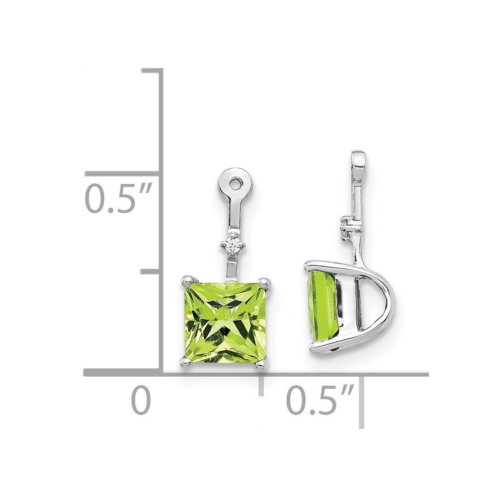 14k White Gold Diamond and 5mm Square Peridot Earring Jackets
