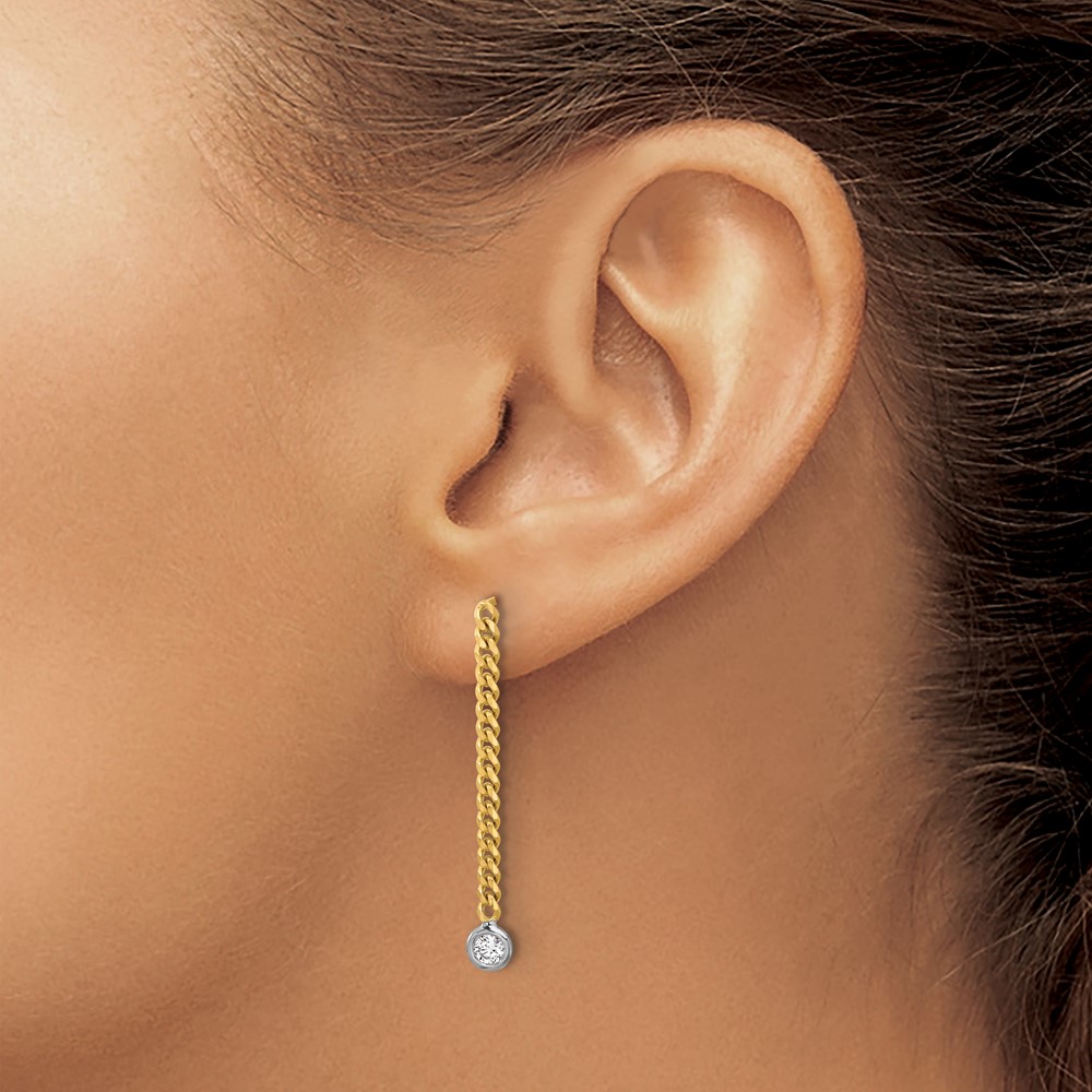Herco 14K Two-Tone Polished Bezel Set Curb Chain Post Dangle Earring Mountings