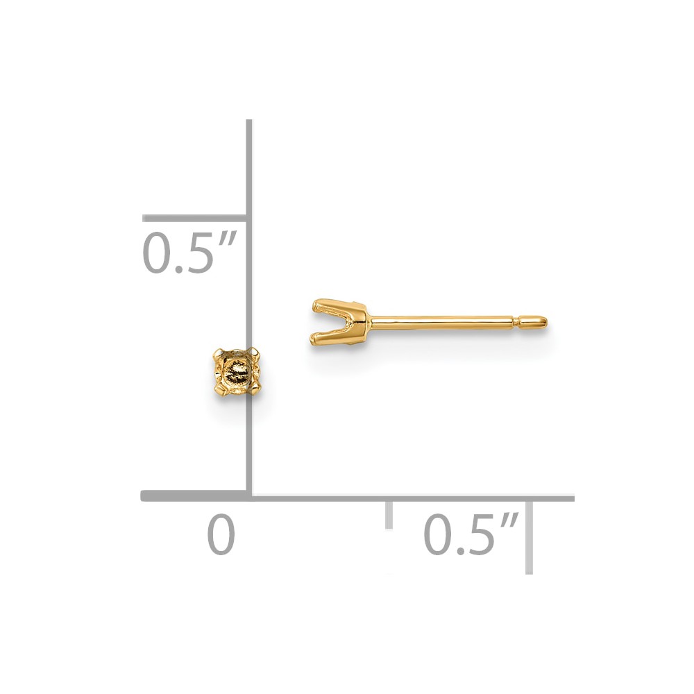 14k 2.25mm Round Stud Earring Mounting w/backs