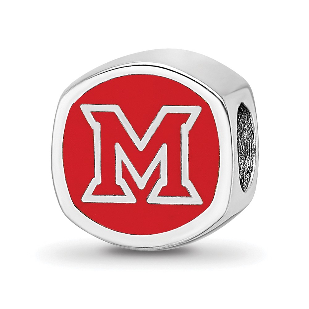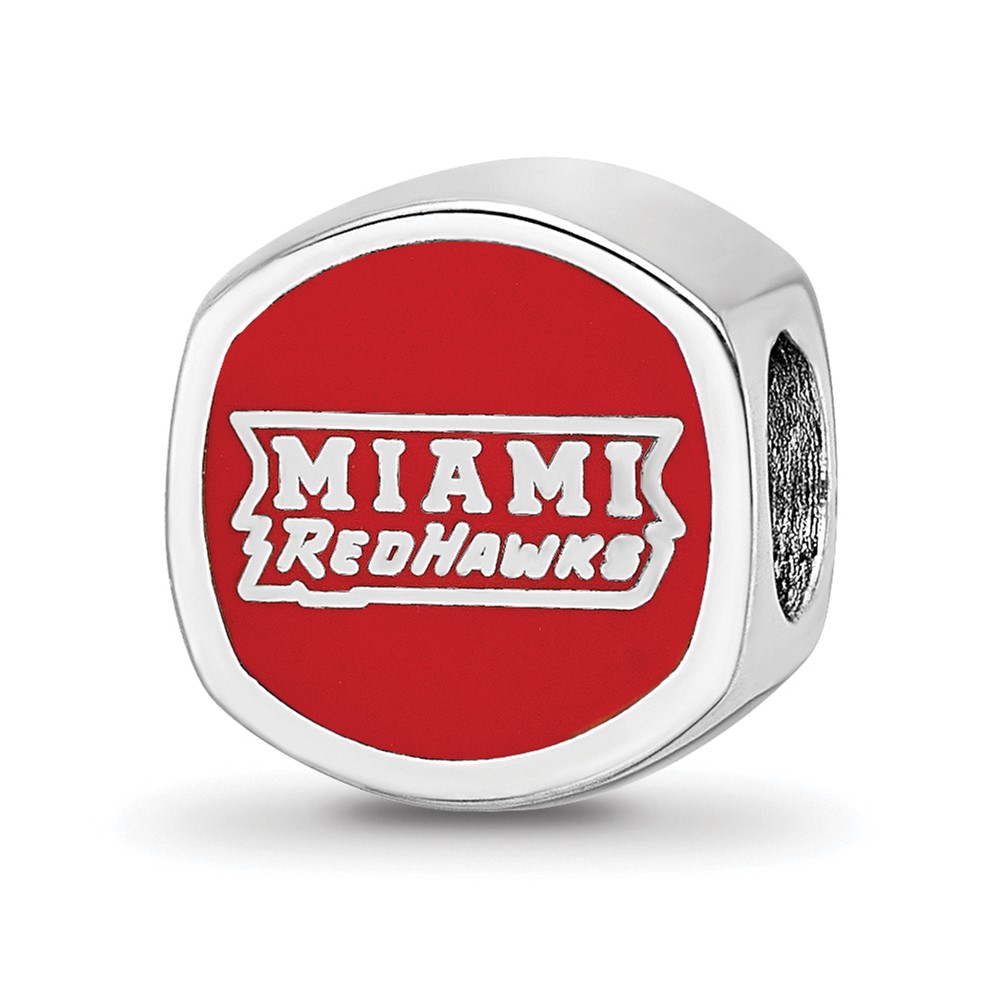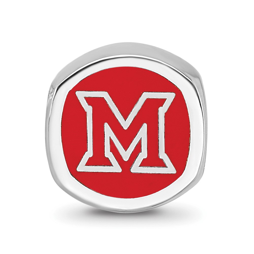 Sterling Silver Rhodium-plated LogoArt Miami University Ohio Double Logo Enameled Bead