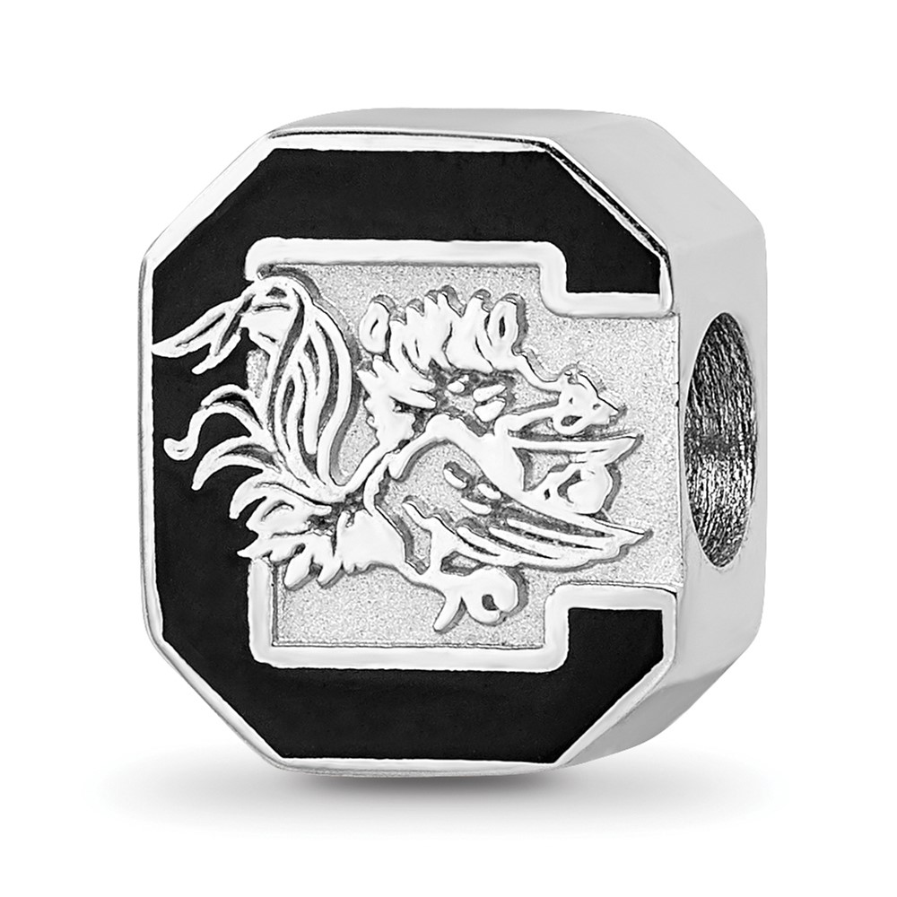 Sterling Silver Rhodium-plated LogoArt University of South Carolina Enameled Logo Bead