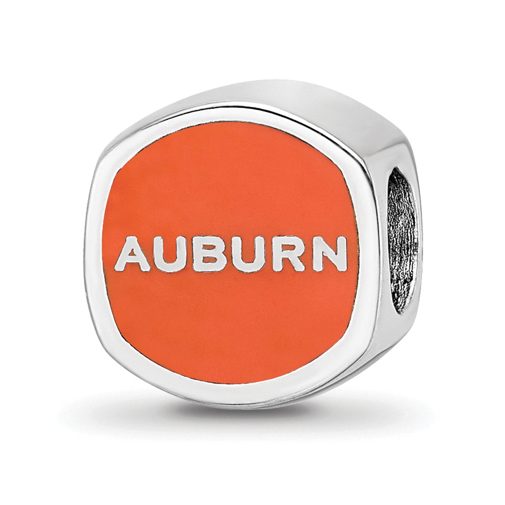 Sterling Silver Rhodium-plated LogoArt Auburn University Enameled Double Logo Bead