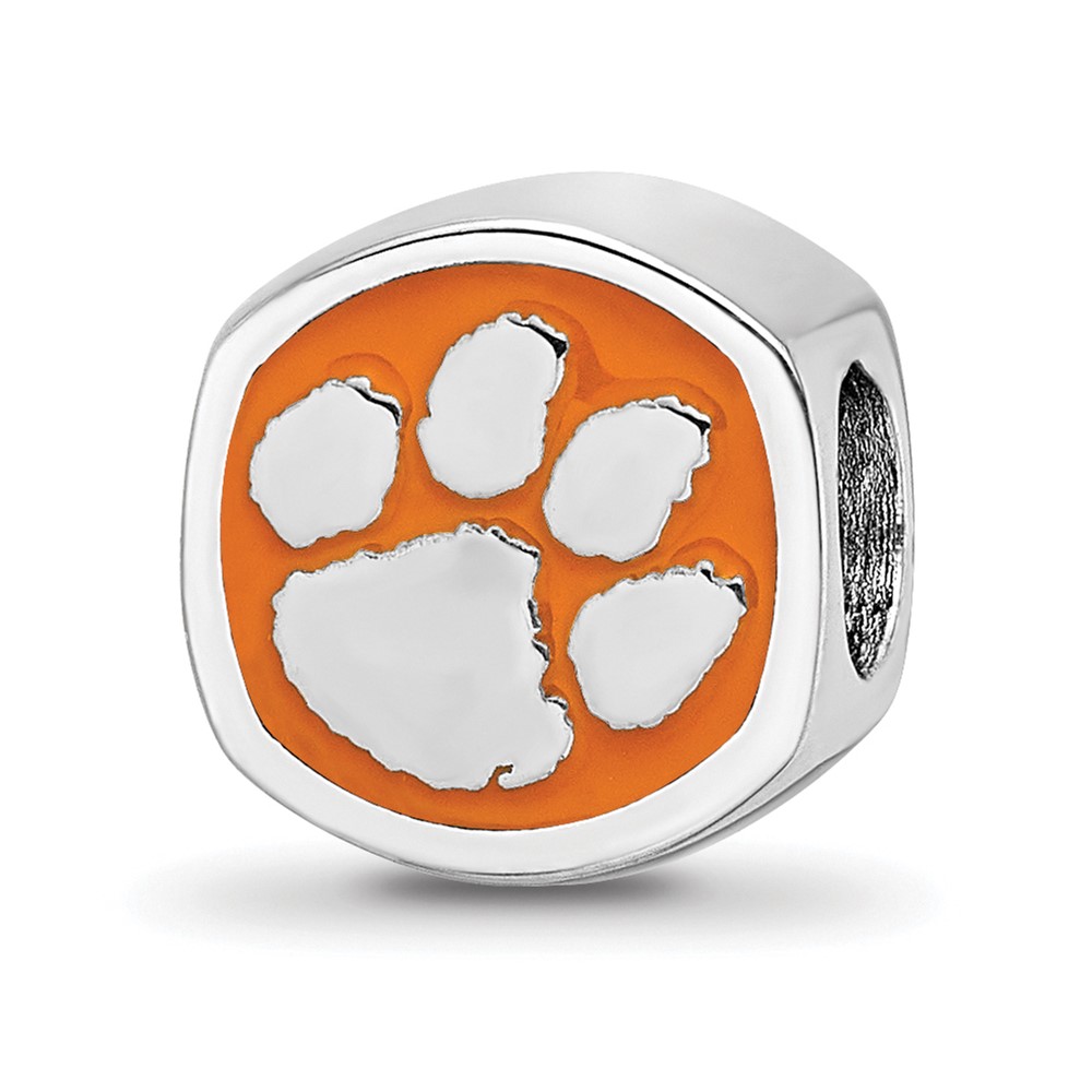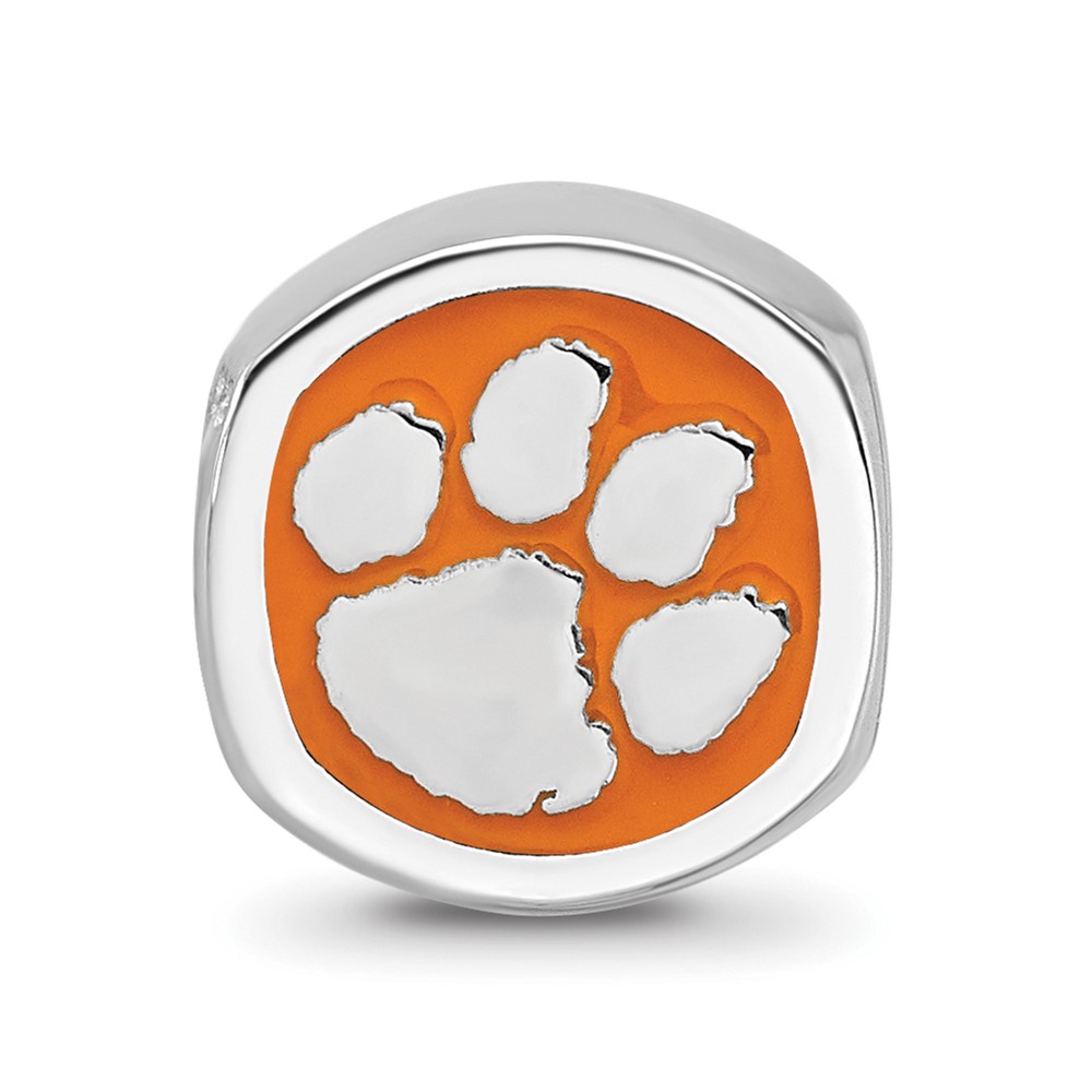 Sterling Silver Rhodium-plated LogoArt Clemson University Tiger Paw Enameled Bead