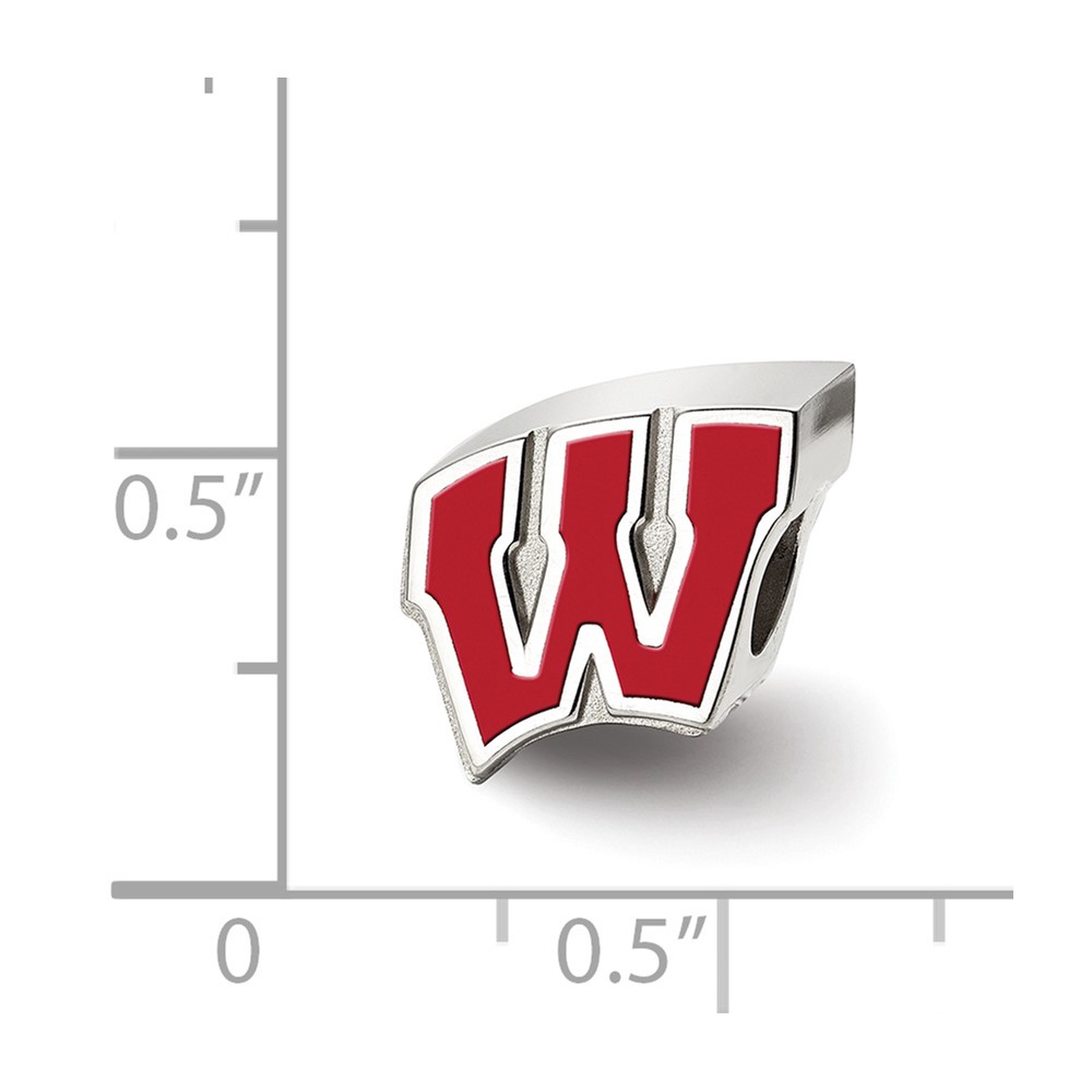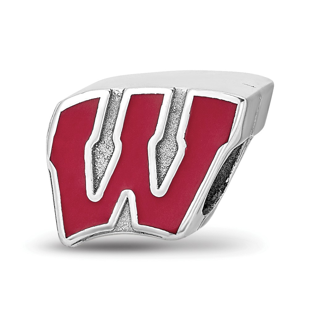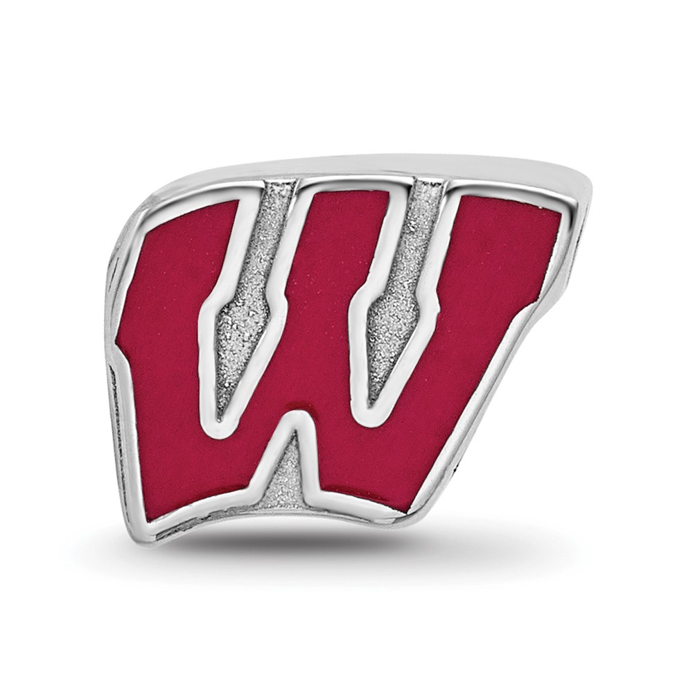 Sterling Silver Rhodium-plated LogoArt University of Wisconsin Letter W Enameled Logo Bead