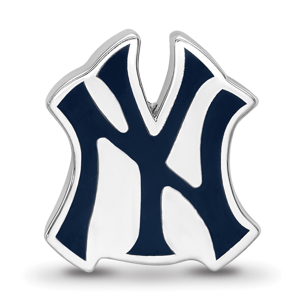 Sterling Silver Rhodium Plated Major League Baseball LogoArt New York Yankees Enamel Bead