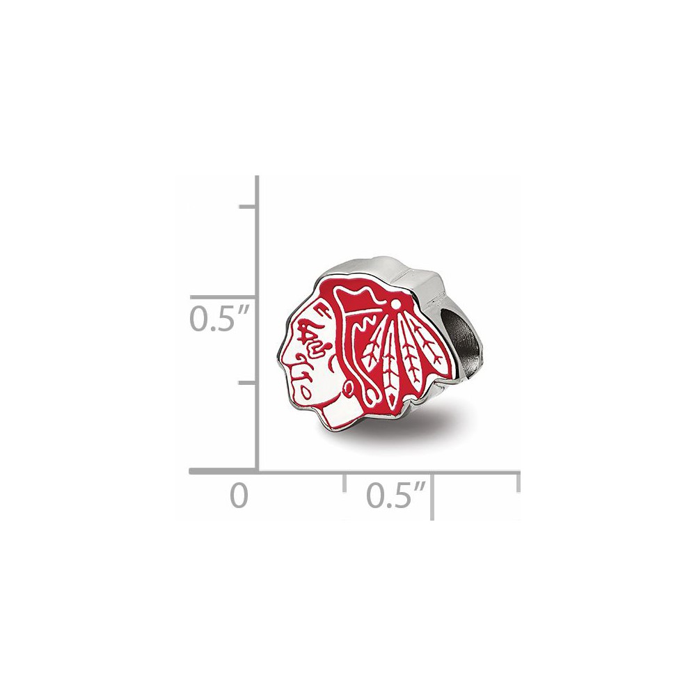 Sterling Silver Rhodium-plated NHL LogoArt Chicago Blackhawks Enameled Logo Bead