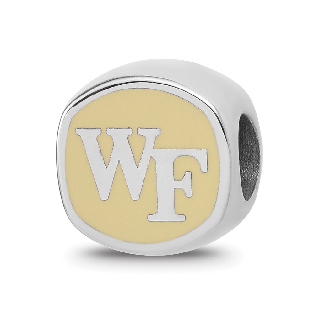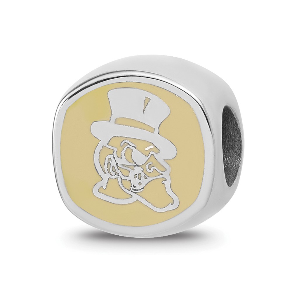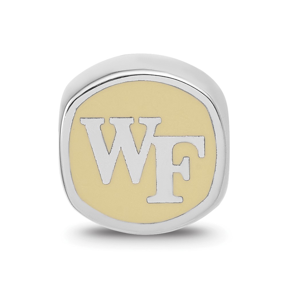 Sterling Silver Rhodium-plated LogoArt Wake Forest University Double Logo Enameled Bead