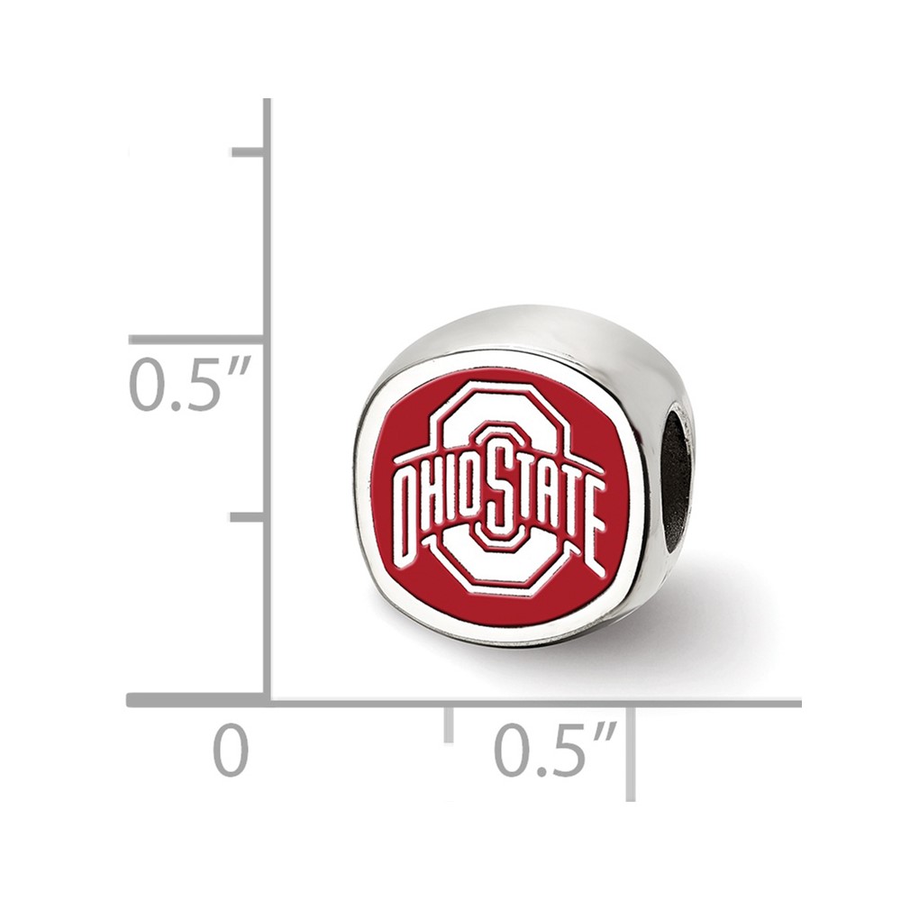 Sterling Silver Rhodium-plated LogoArt The Ohio State University Enameled Double Logo Bead