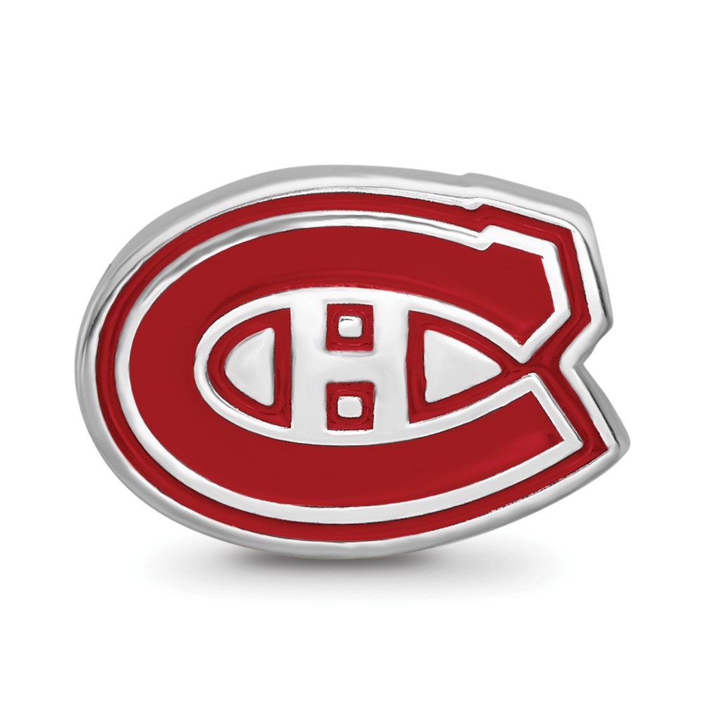 Sterling Silver Rhodium-plated NHL LogoArt Montreal Canadiens Enameled Bead