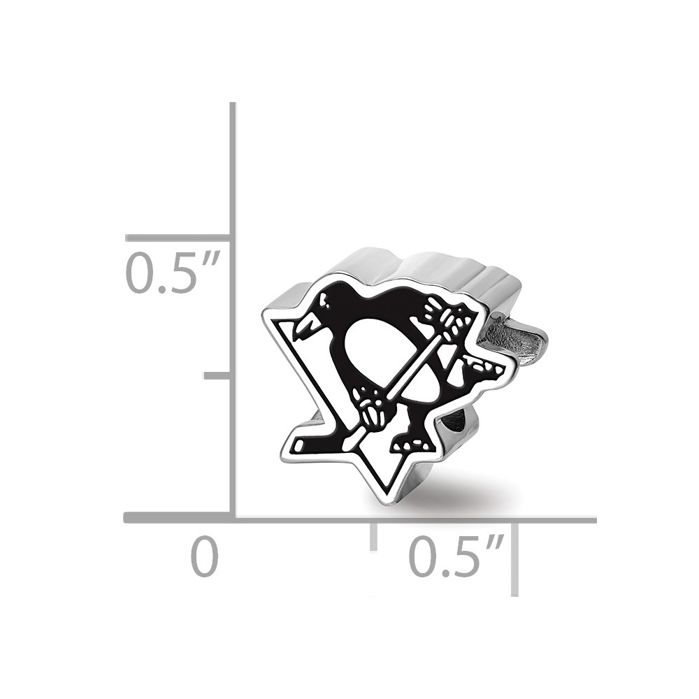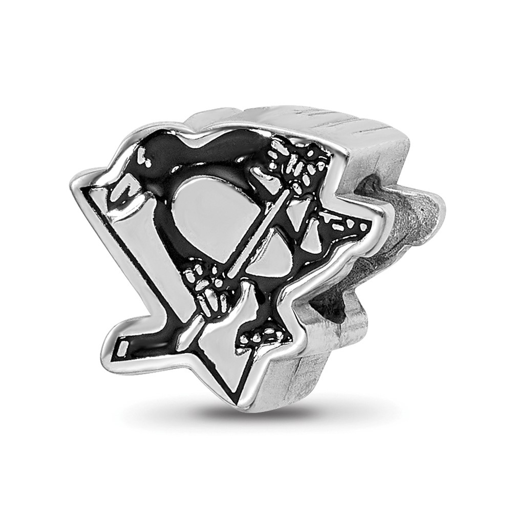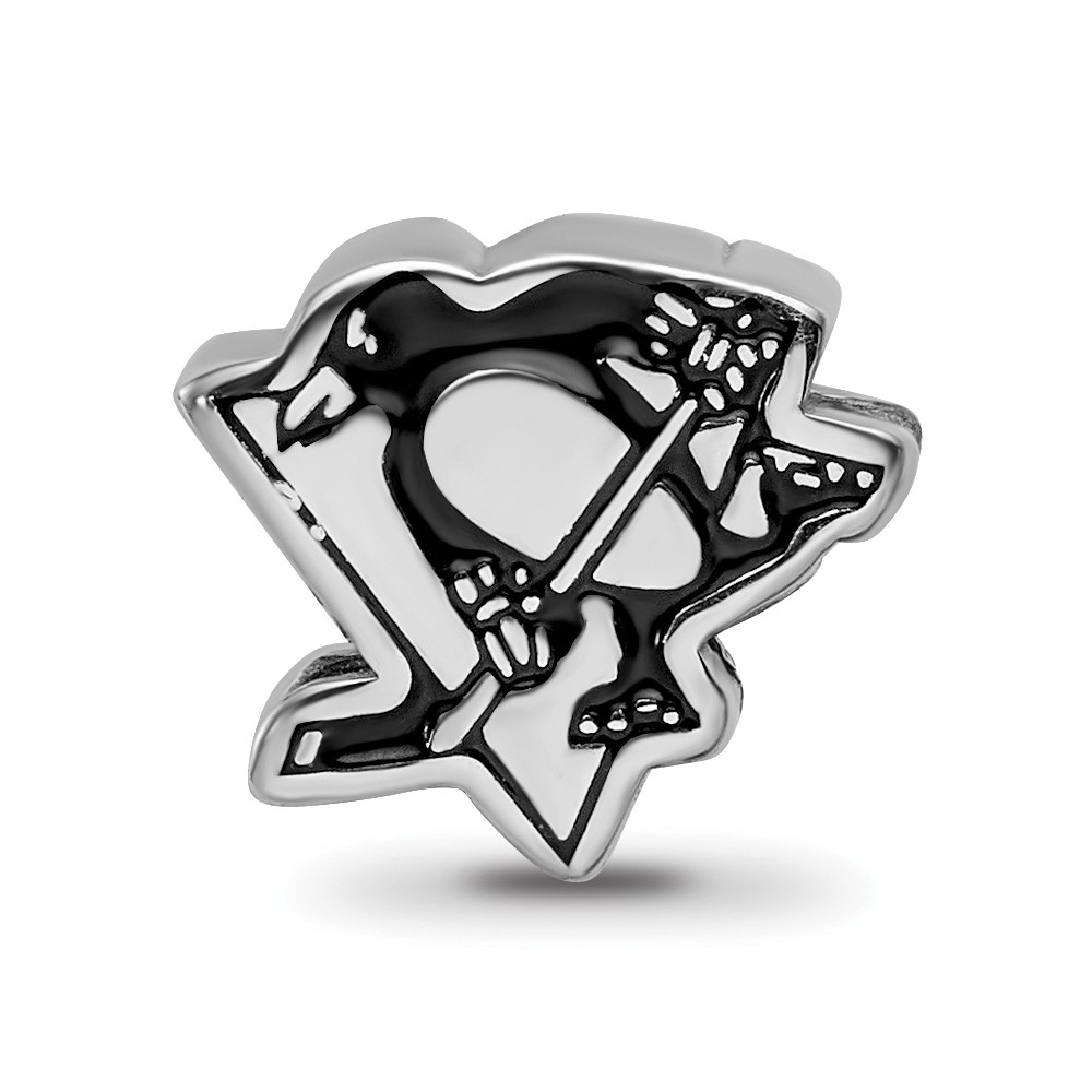 Sterling Silver Rhodium-plated NHL LogoArt Pittsburgh Penguins Logo Enameled Bead