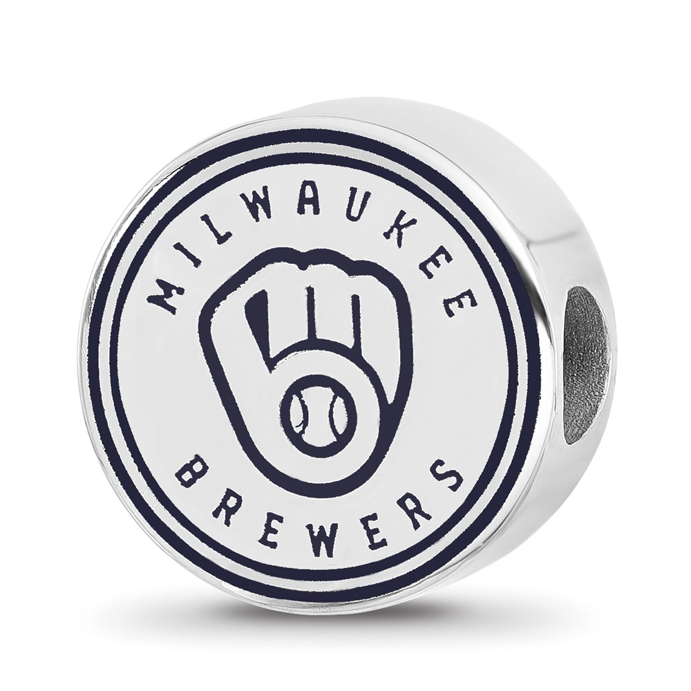 Sterling Silver Rhodium Plated Major League Baseball LogoArt Milwaukee Brewers Enameled Bead