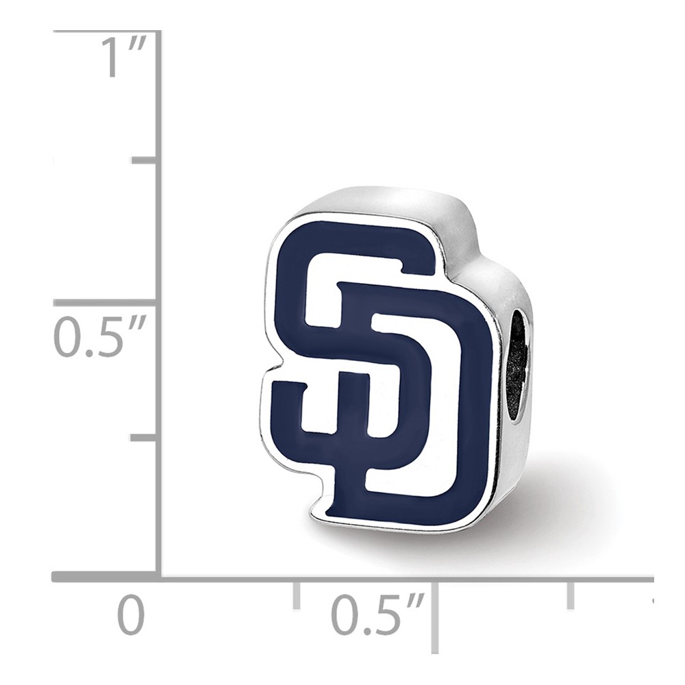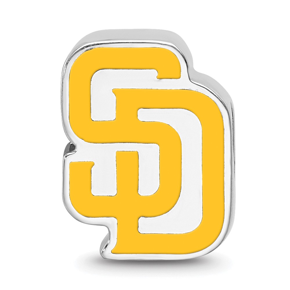 Sterling Silver Rhodium Plated Major League Baseball LogoArt San Diego Padres S-D Enamel Bead