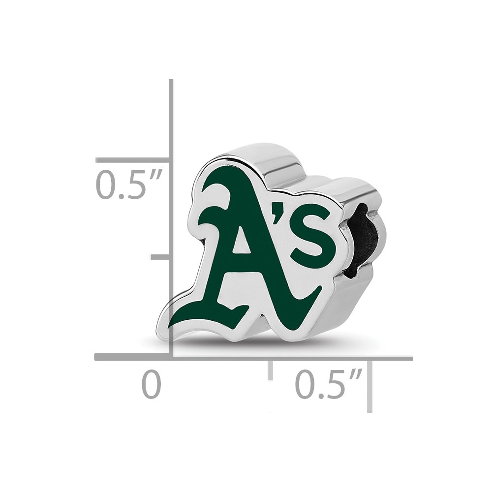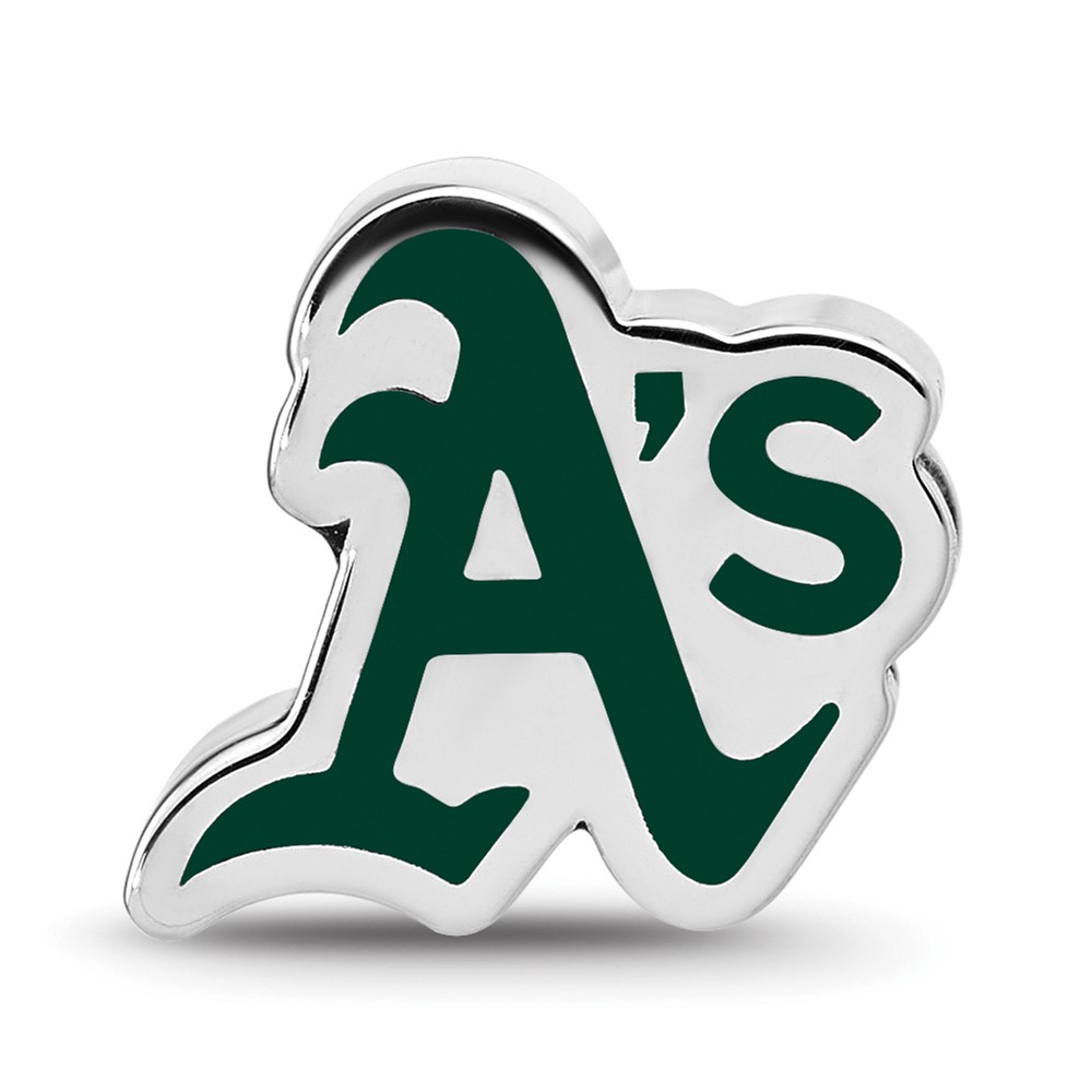 Sterling Silver Rhodium Plated Major League Baseball LogoArt Oakland Athletics Enameled Bead