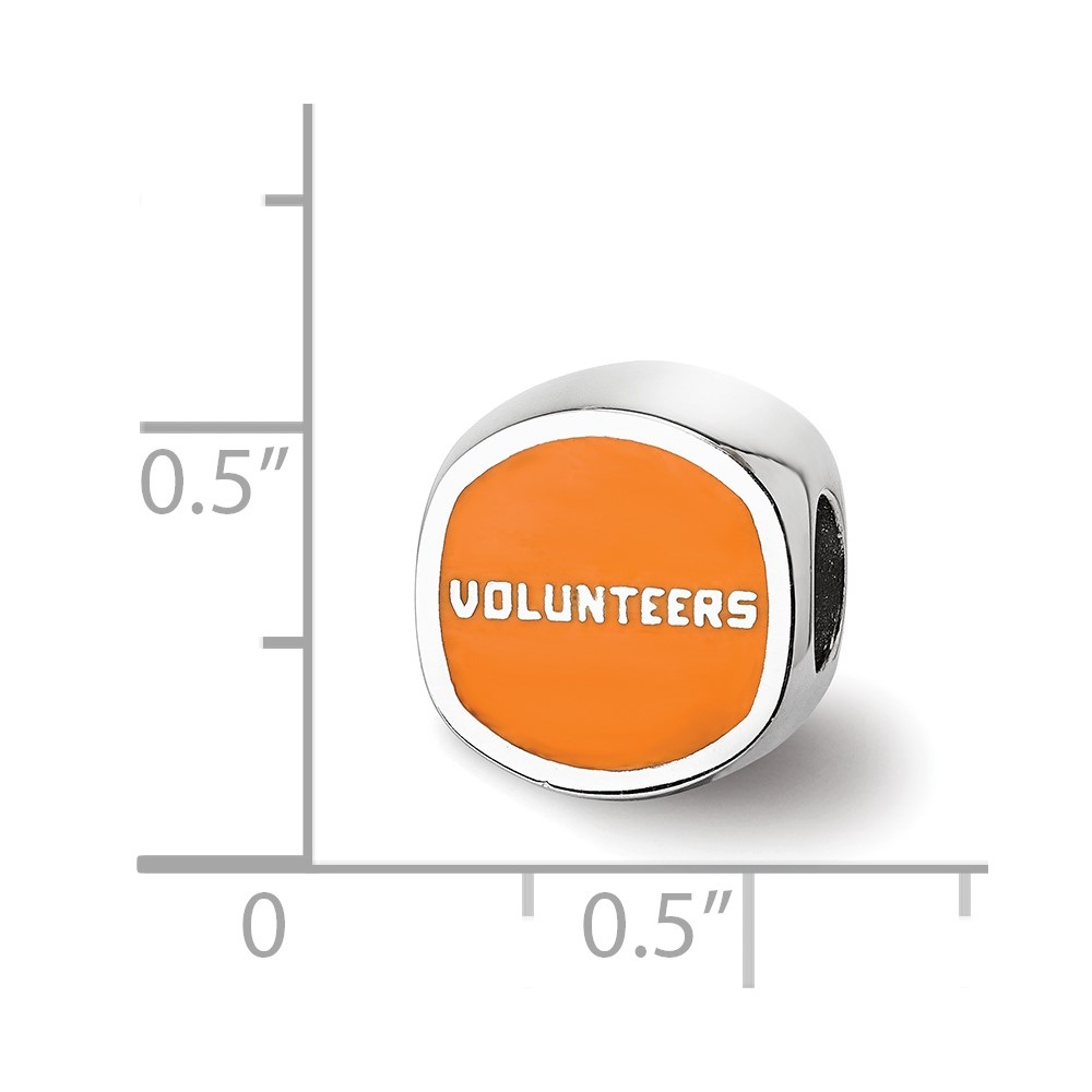 Sterling Silver Rhodium-plated LogoArt University of Tennessee Enameled Double Logo Bead