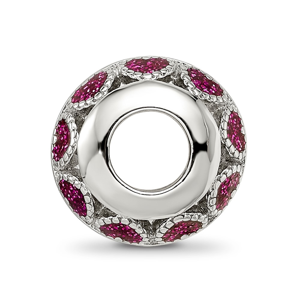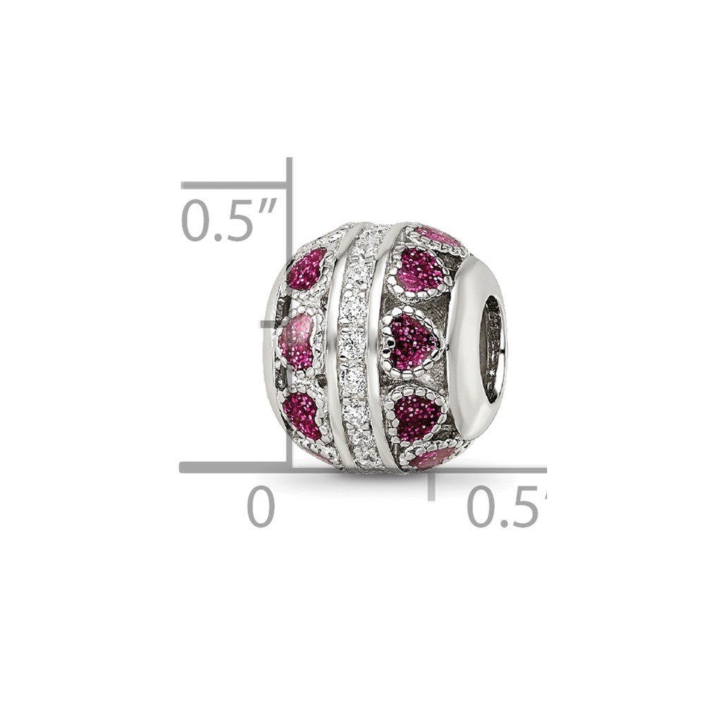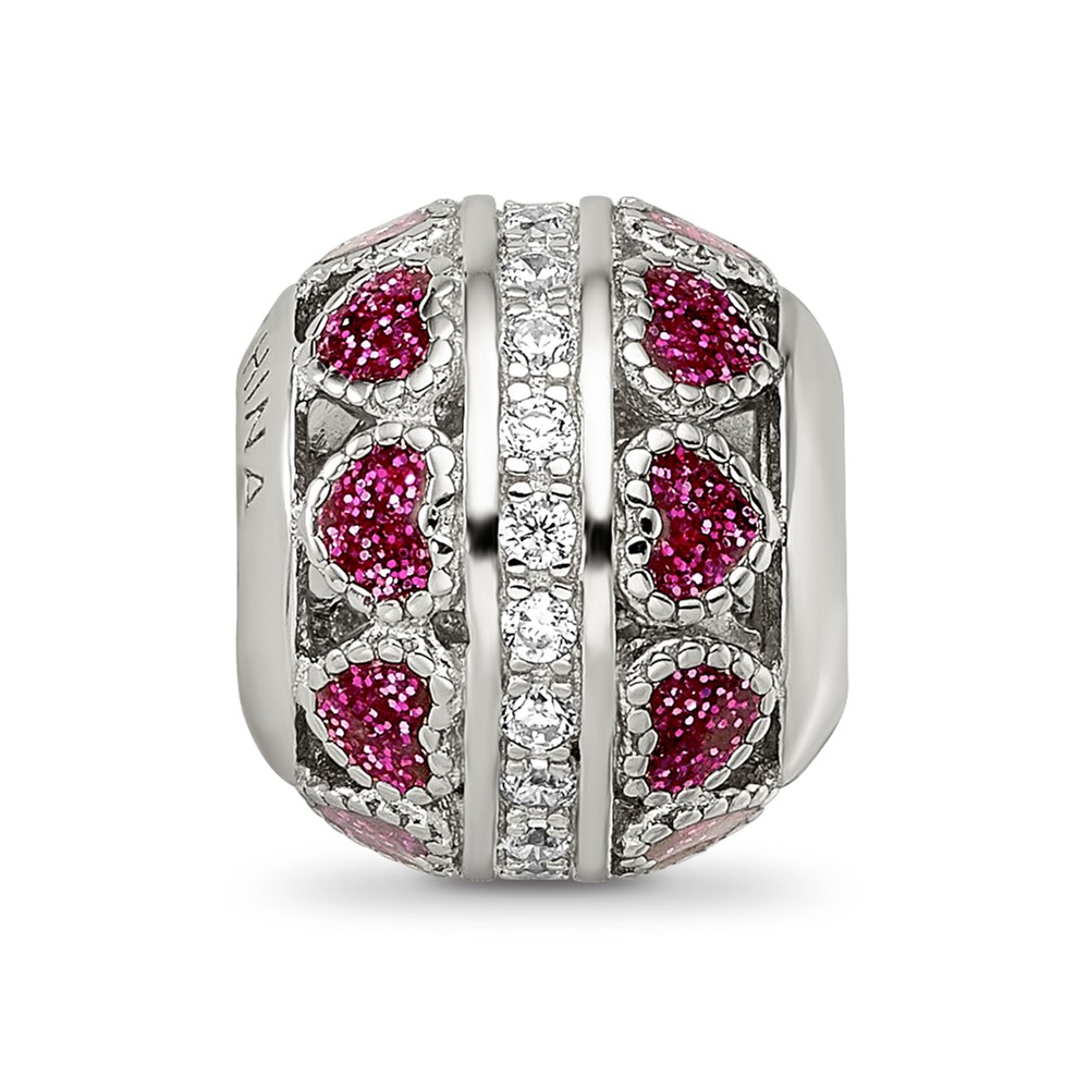 Sterling Silver Reflections Rh-plated Pink Enamel Hearts & CZ Circle Bead