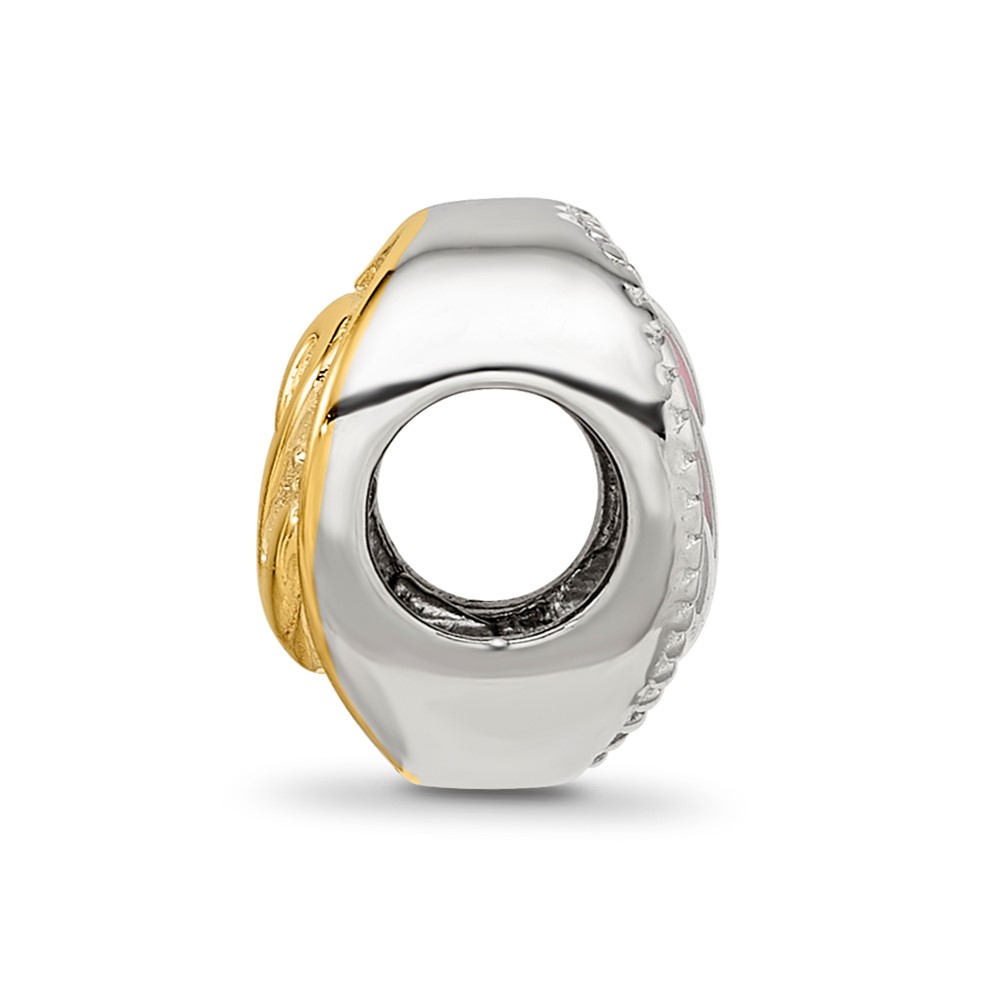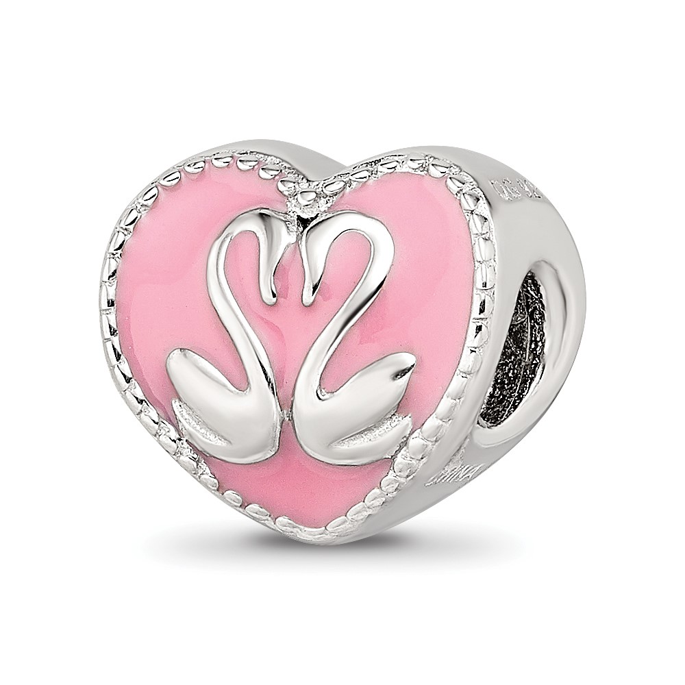 Sterling Silver Reflections Pink Enameled, Yellow IP-Plated CZ Swans Bead