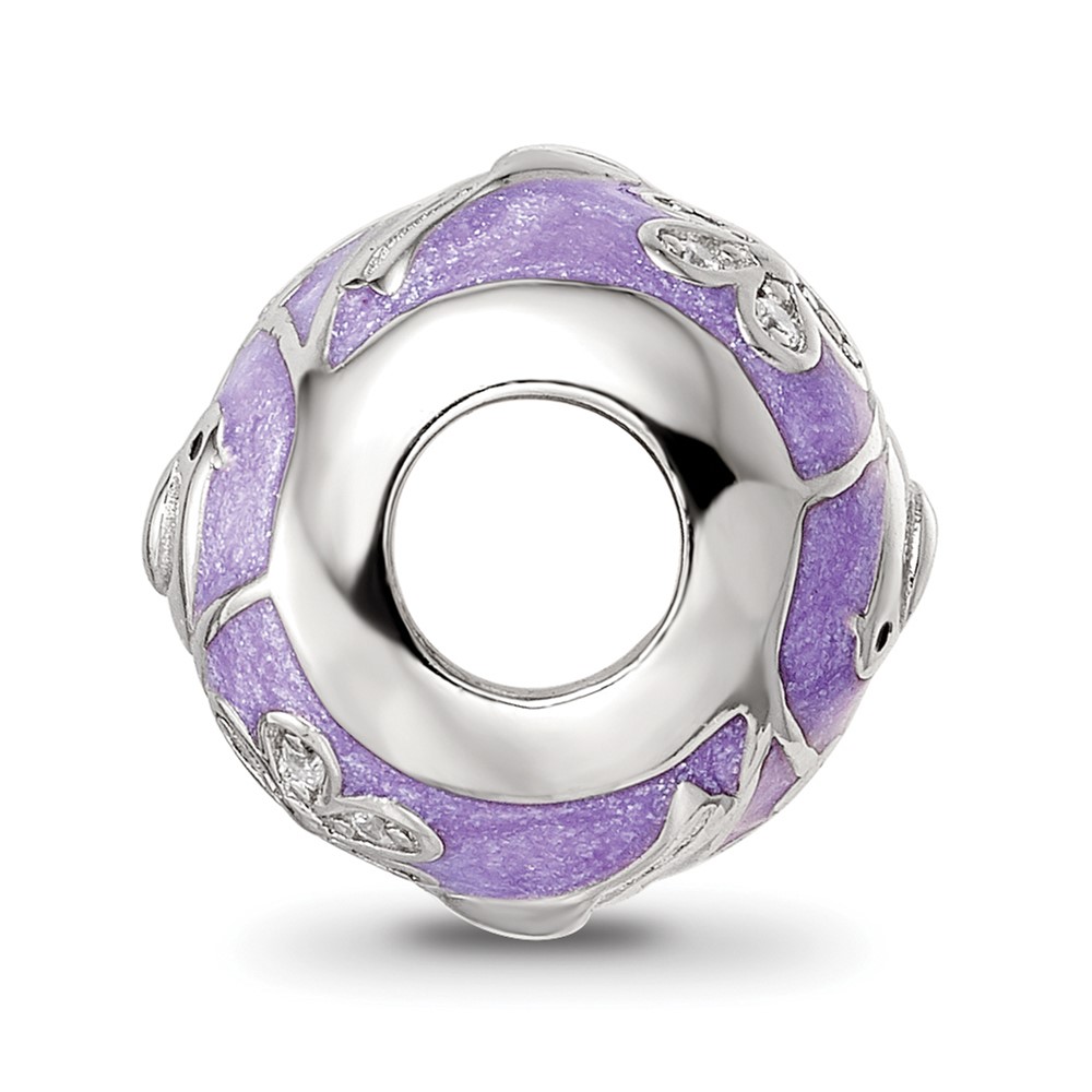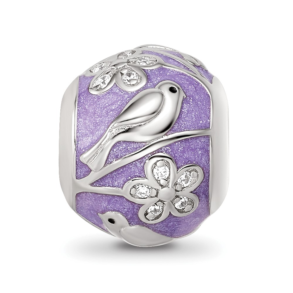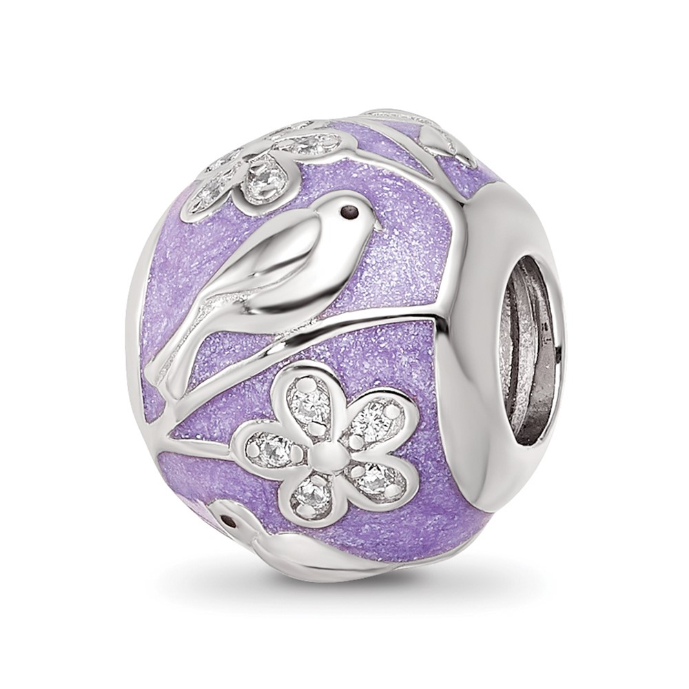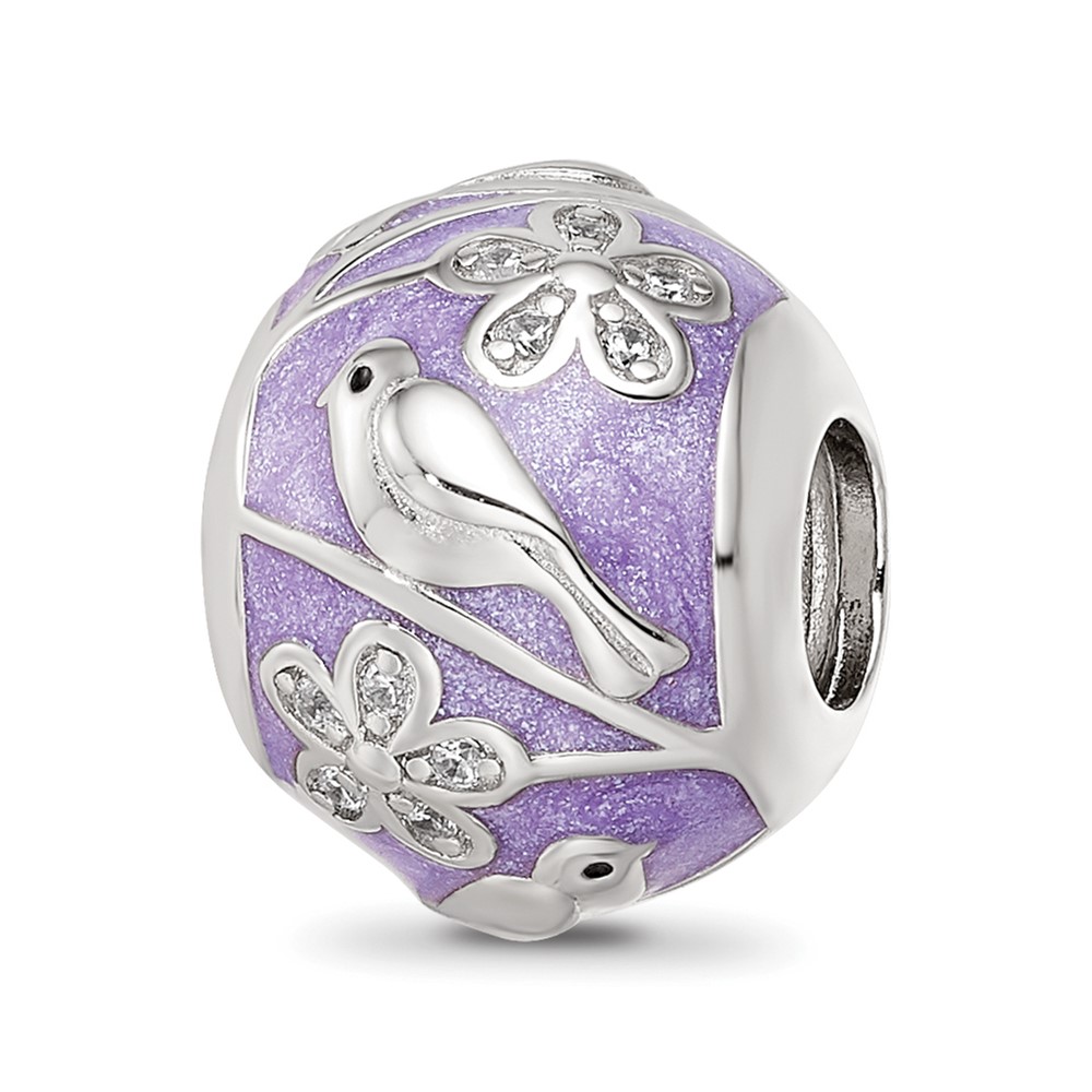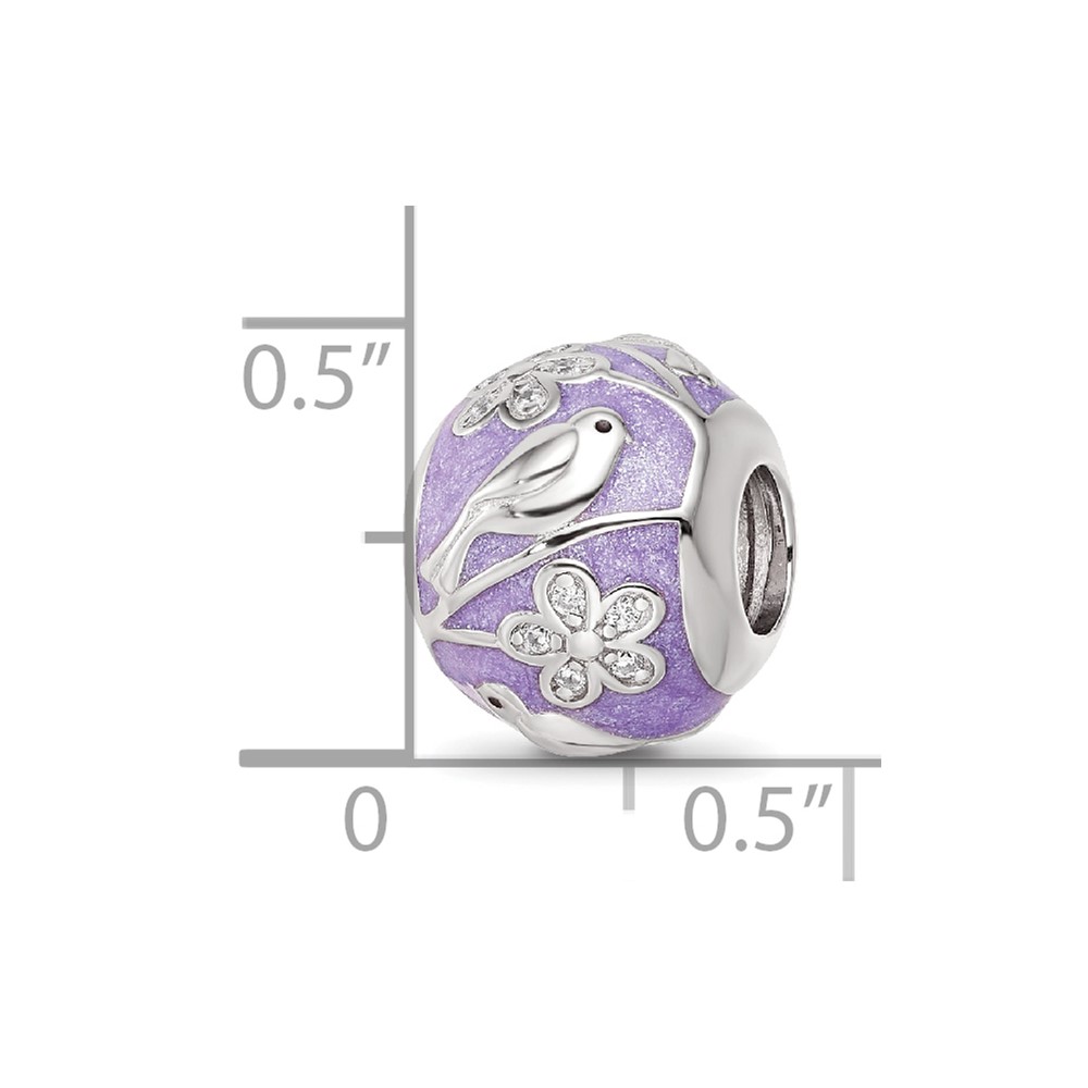 Sterling Silver Reflections Rhodium-plated Enamel CZ Spring Theme Bead