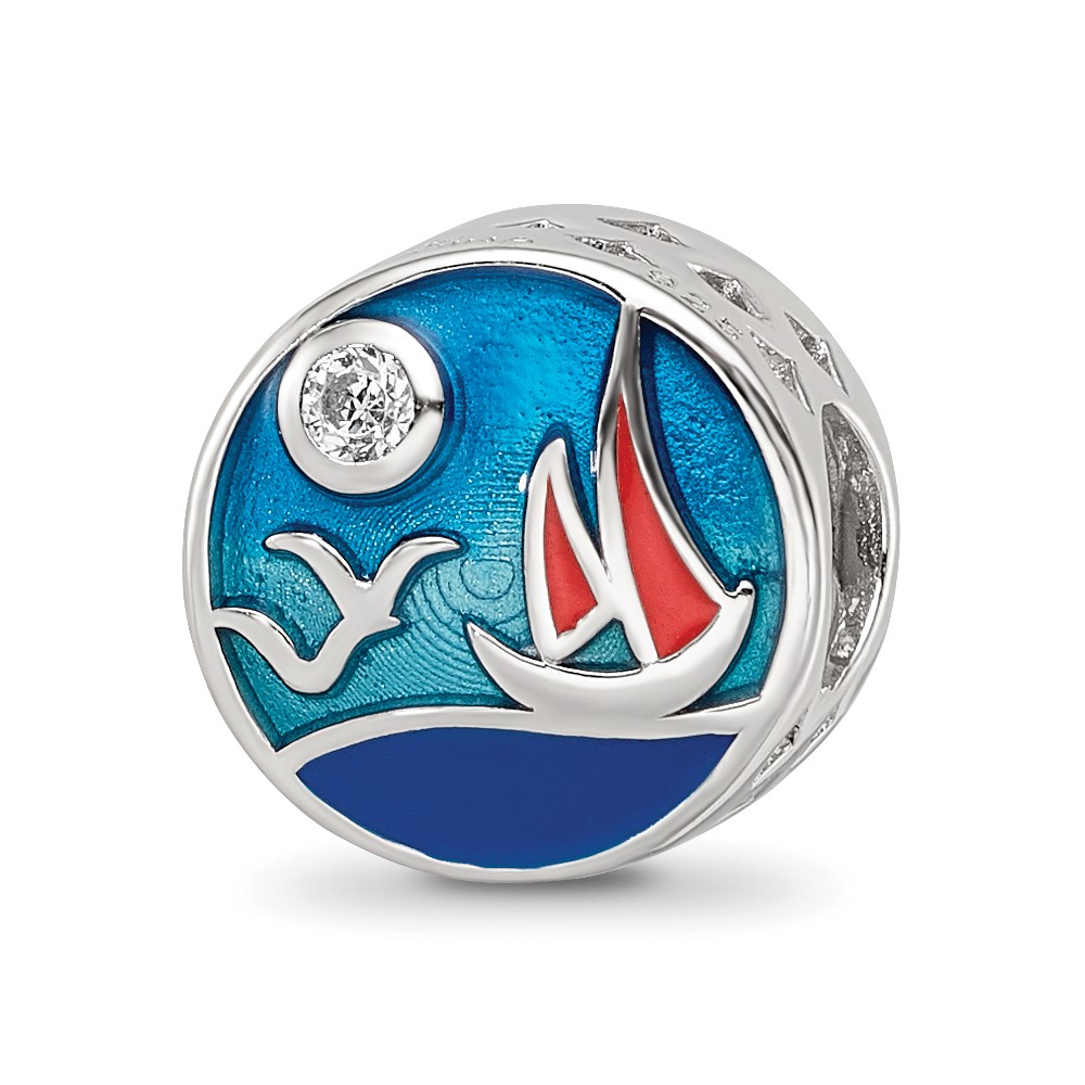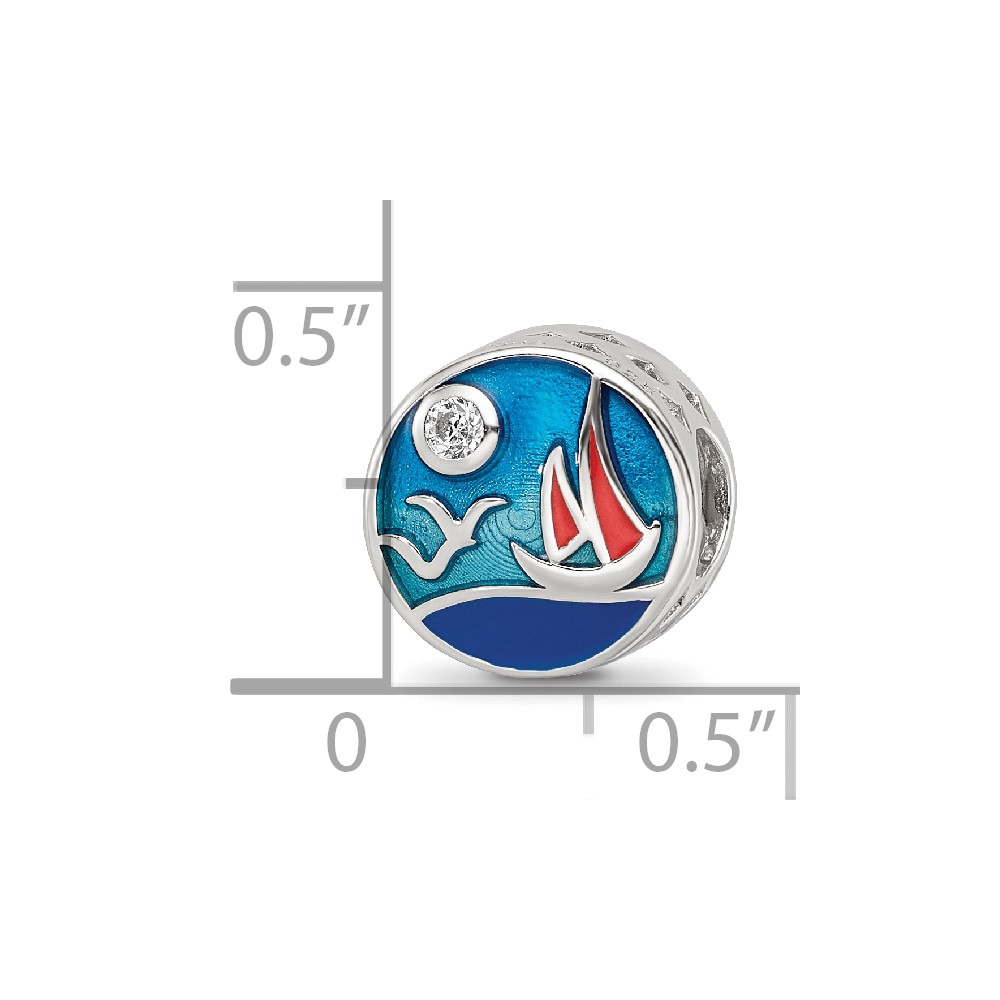 Sterling Silver Reflections Rhod-plated Enamel CZ Ocean Scene Bead