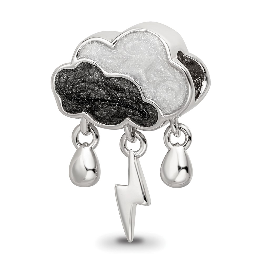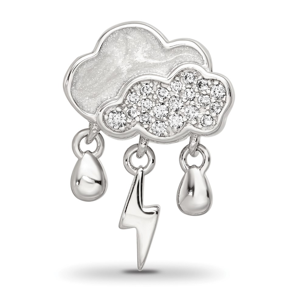 Sterling Silver Reflections Rhod-plated CZ Enamel Storm Cloud Bead