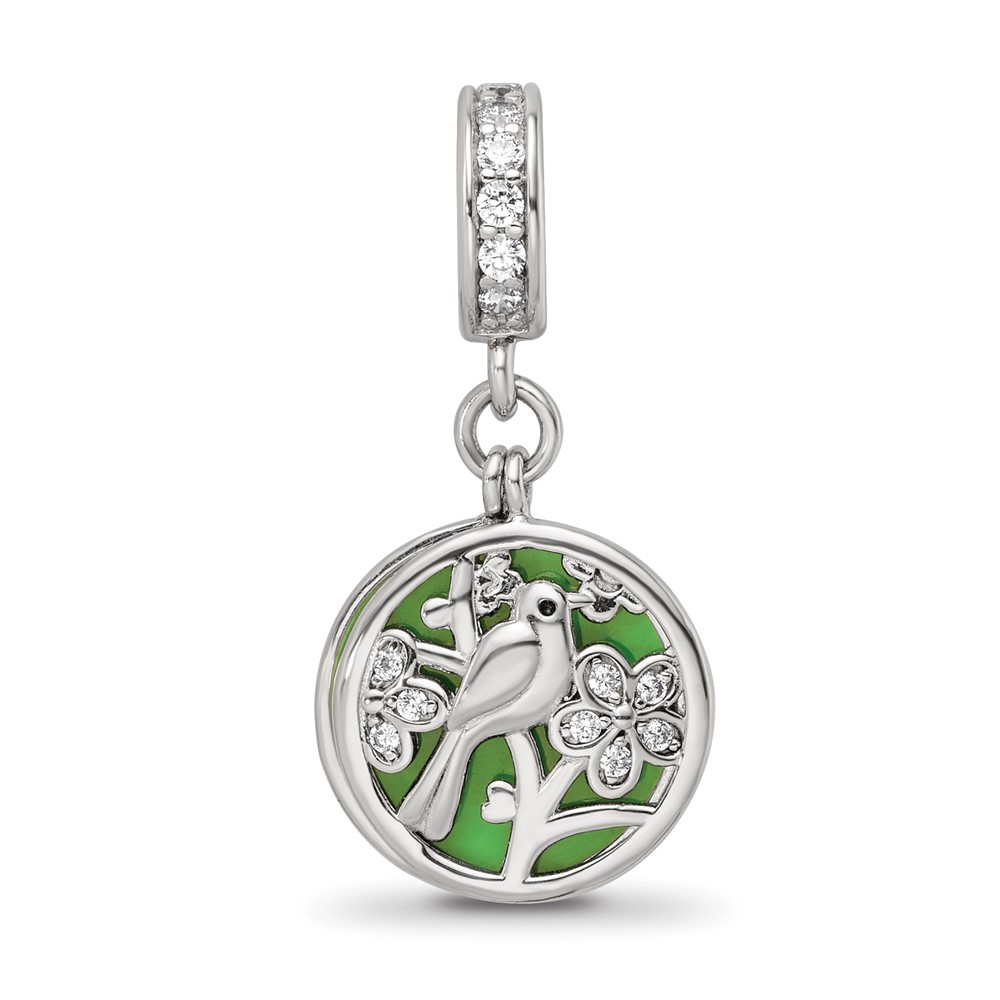 SS Reflections Rhod-plated CZ Enamel Bird/Flower 2-piece Dangle Bead