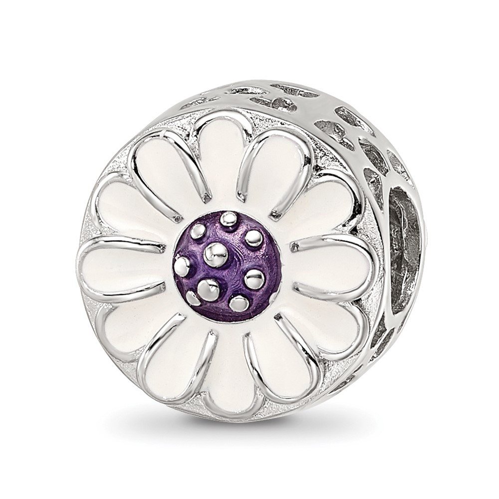 Sterling Silver Reflections Rhodium-plated Enamel Flower Bead