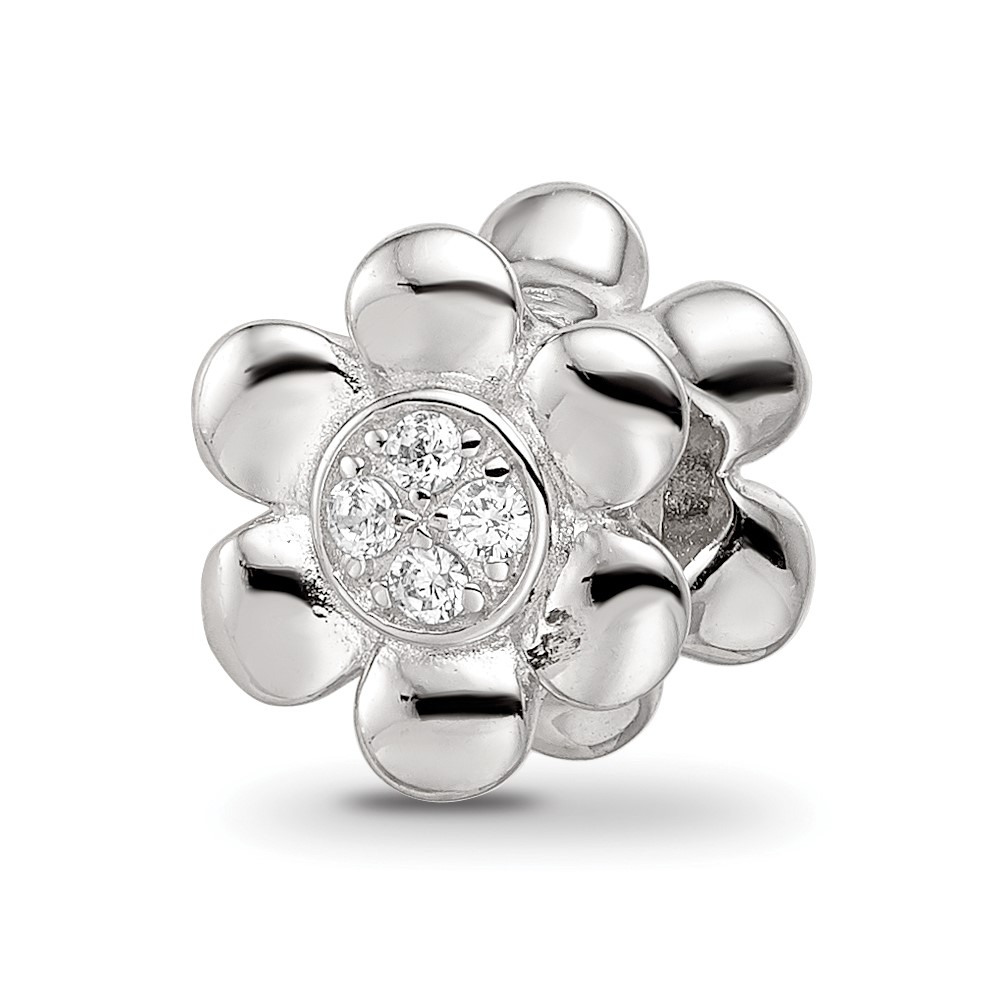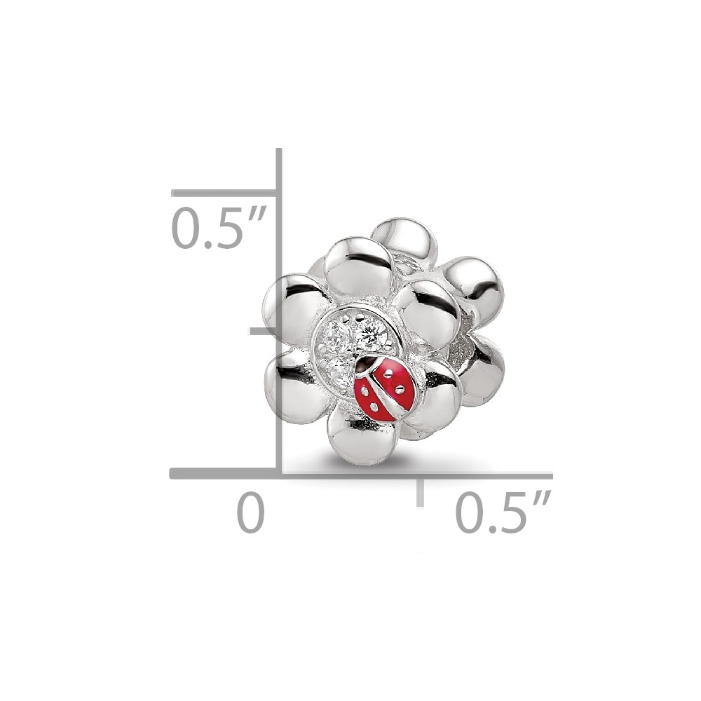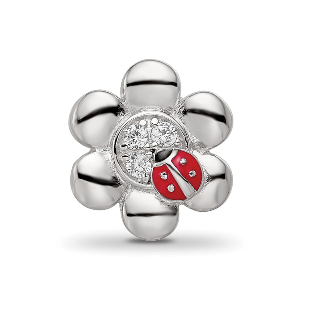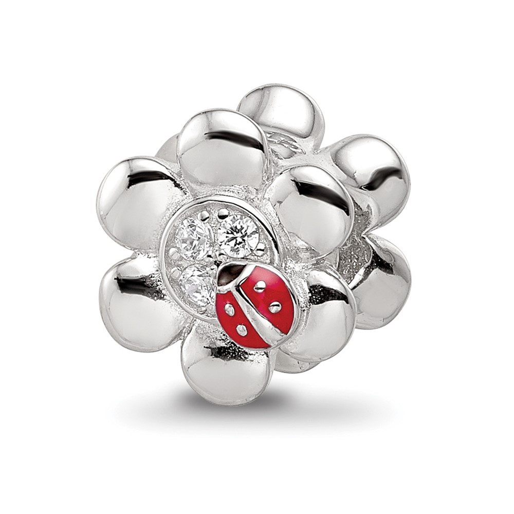 Sterling Silver Reflections Rhod-plated Enameled CZ Ladybug Flower Bead