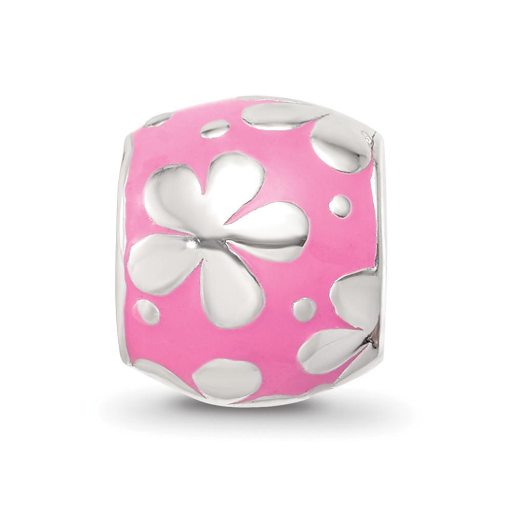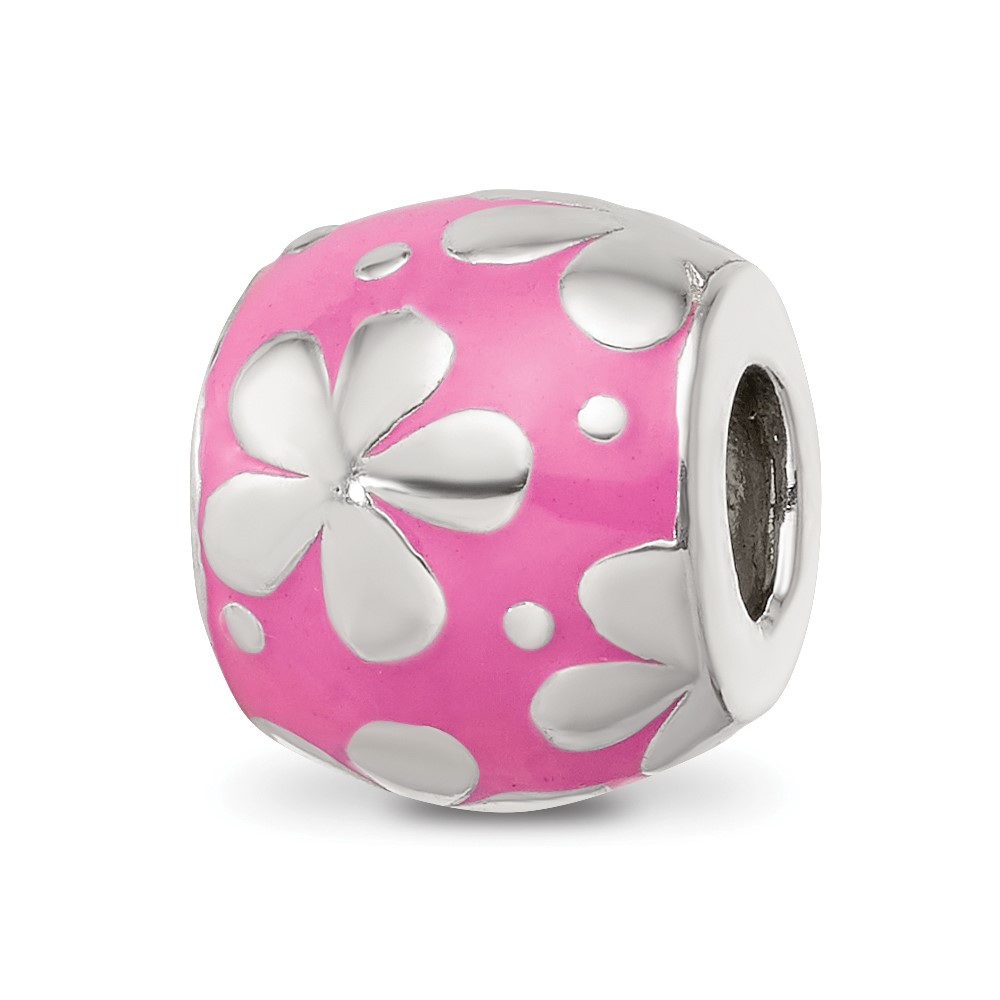 Sterling Silver Reflections Pink Enamel Floral Bead