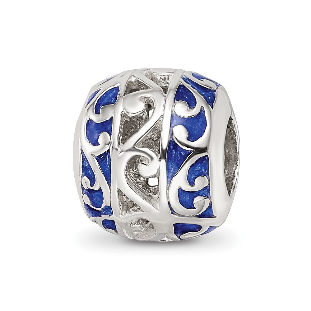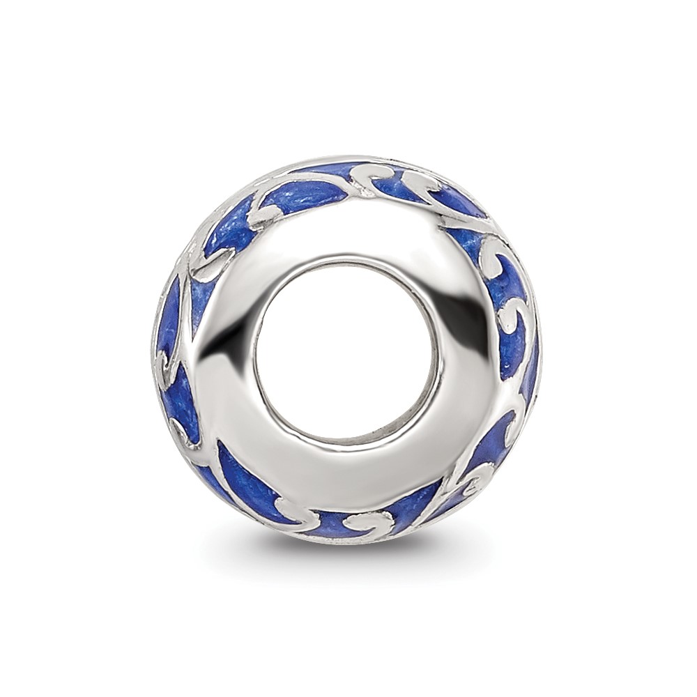 Sterling Silver Reflections Blue Enamel Swirl Design Bead