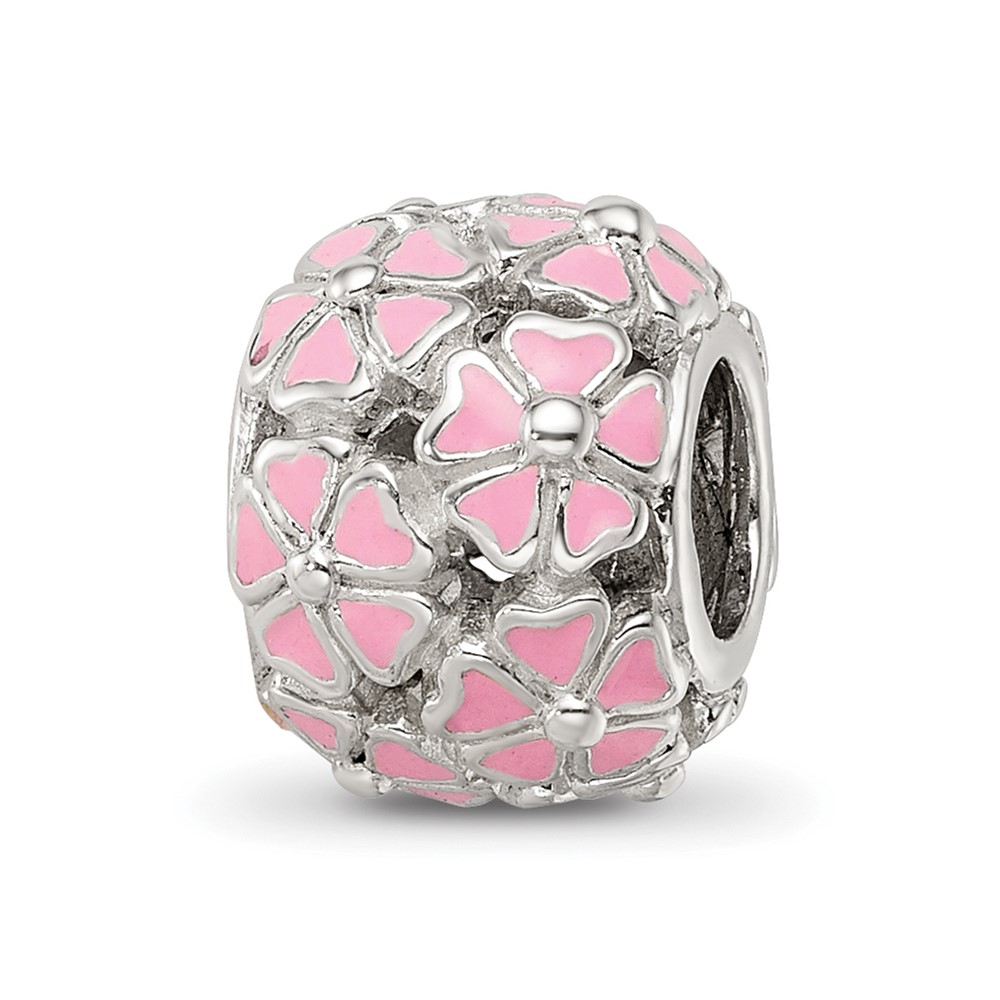 Sterling Silver Reflections Pink Enamel Floral Bead