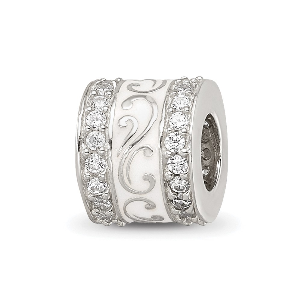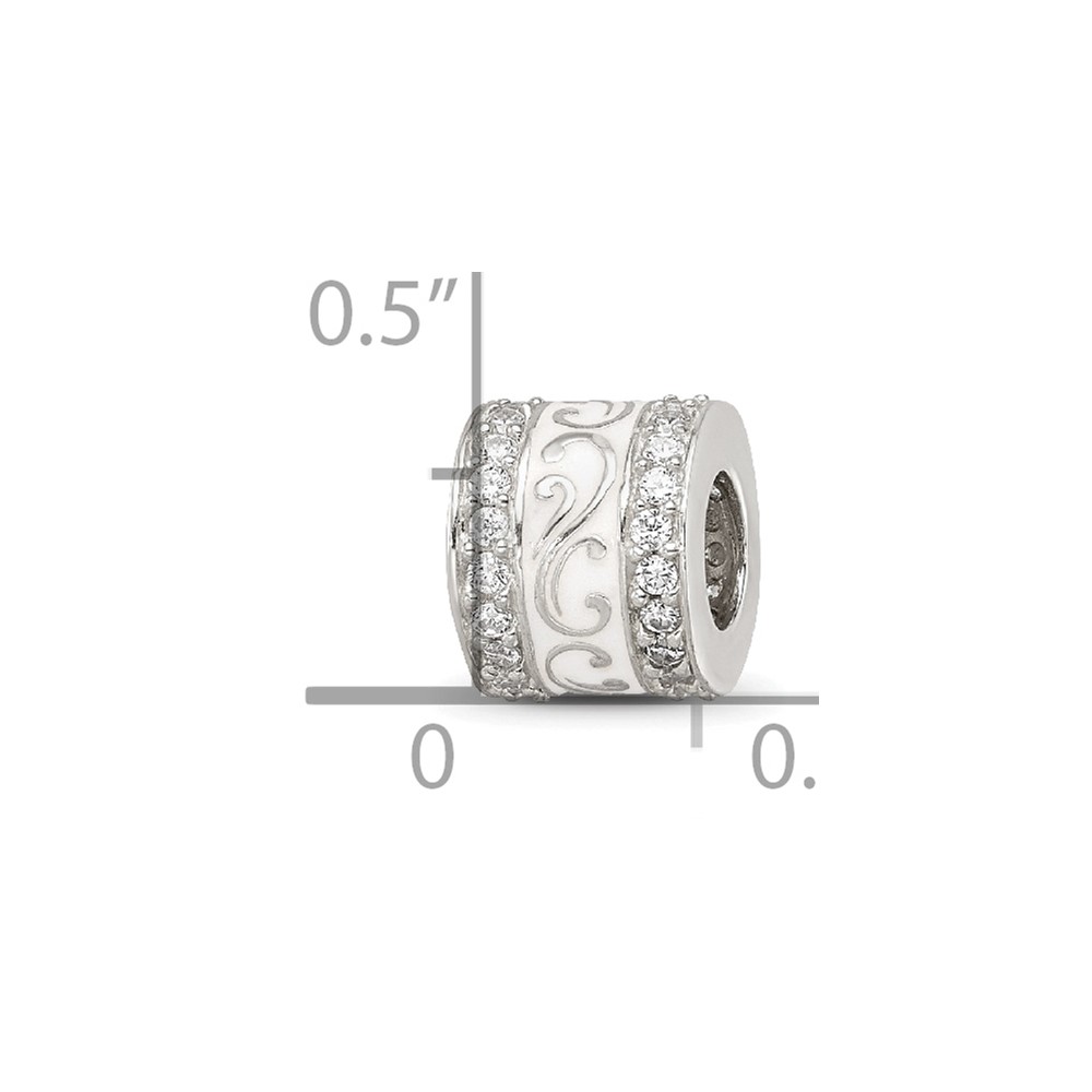 Sterling Silver Reflections White Enamel CZ Swirl Design Bead