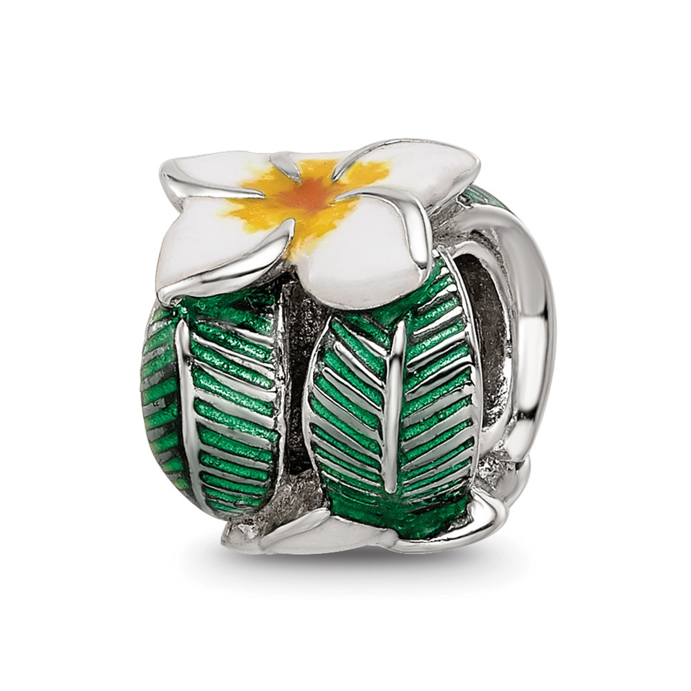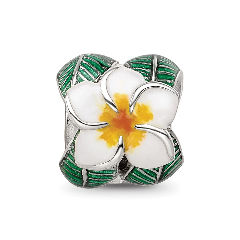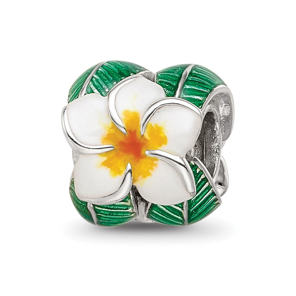 Sterling Silver Reflections Enamel Flower & Leaves Round Bead