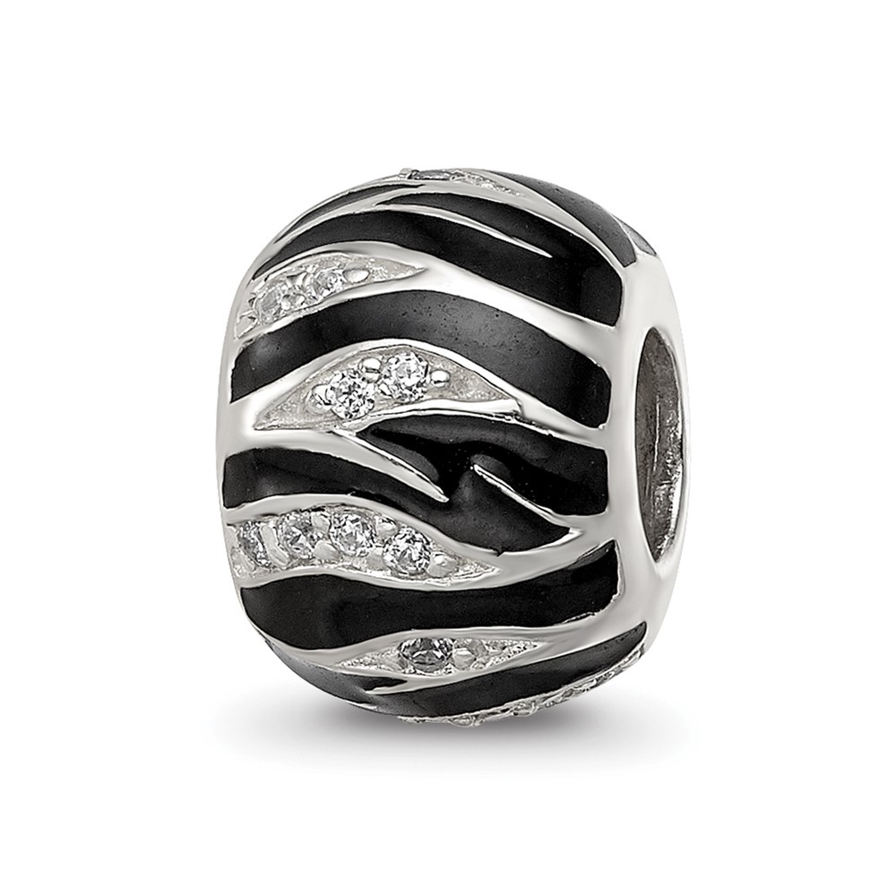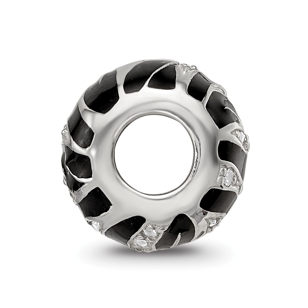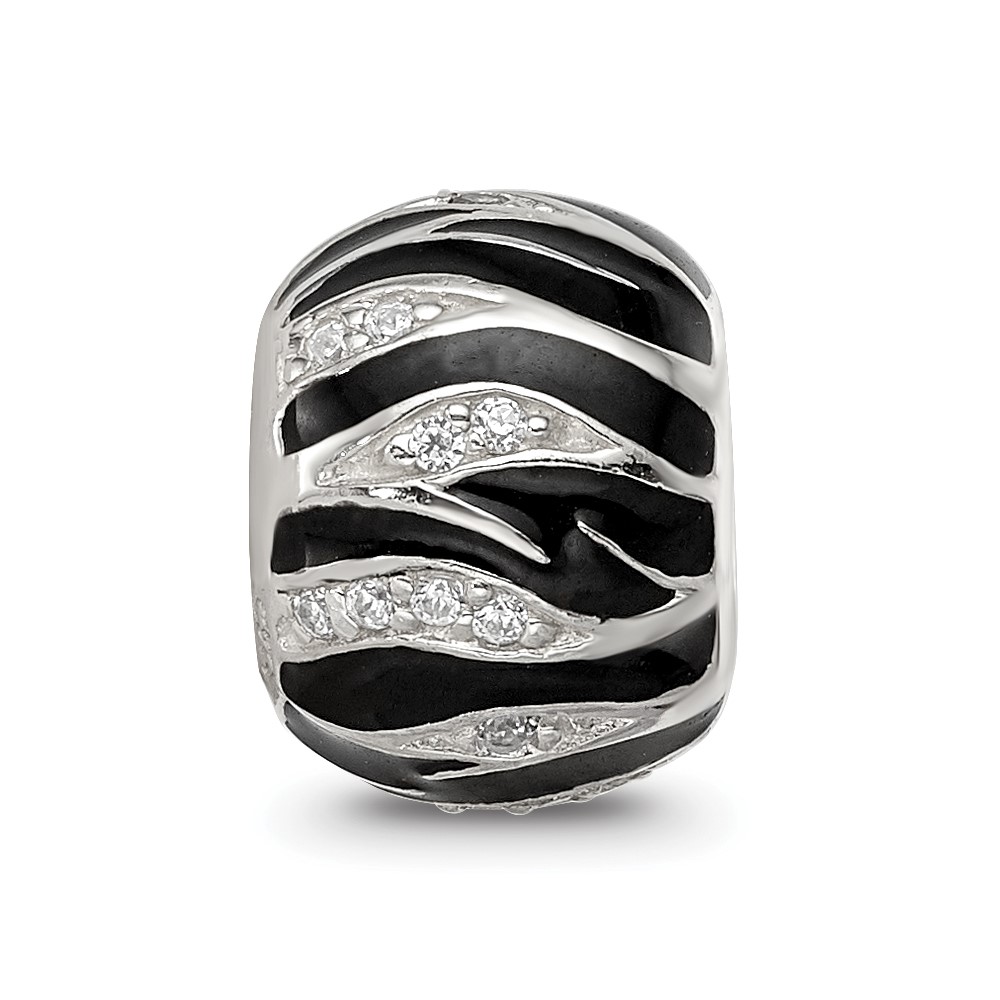 Sterling Silver Reflections Black Enamel Striped CZ Bead