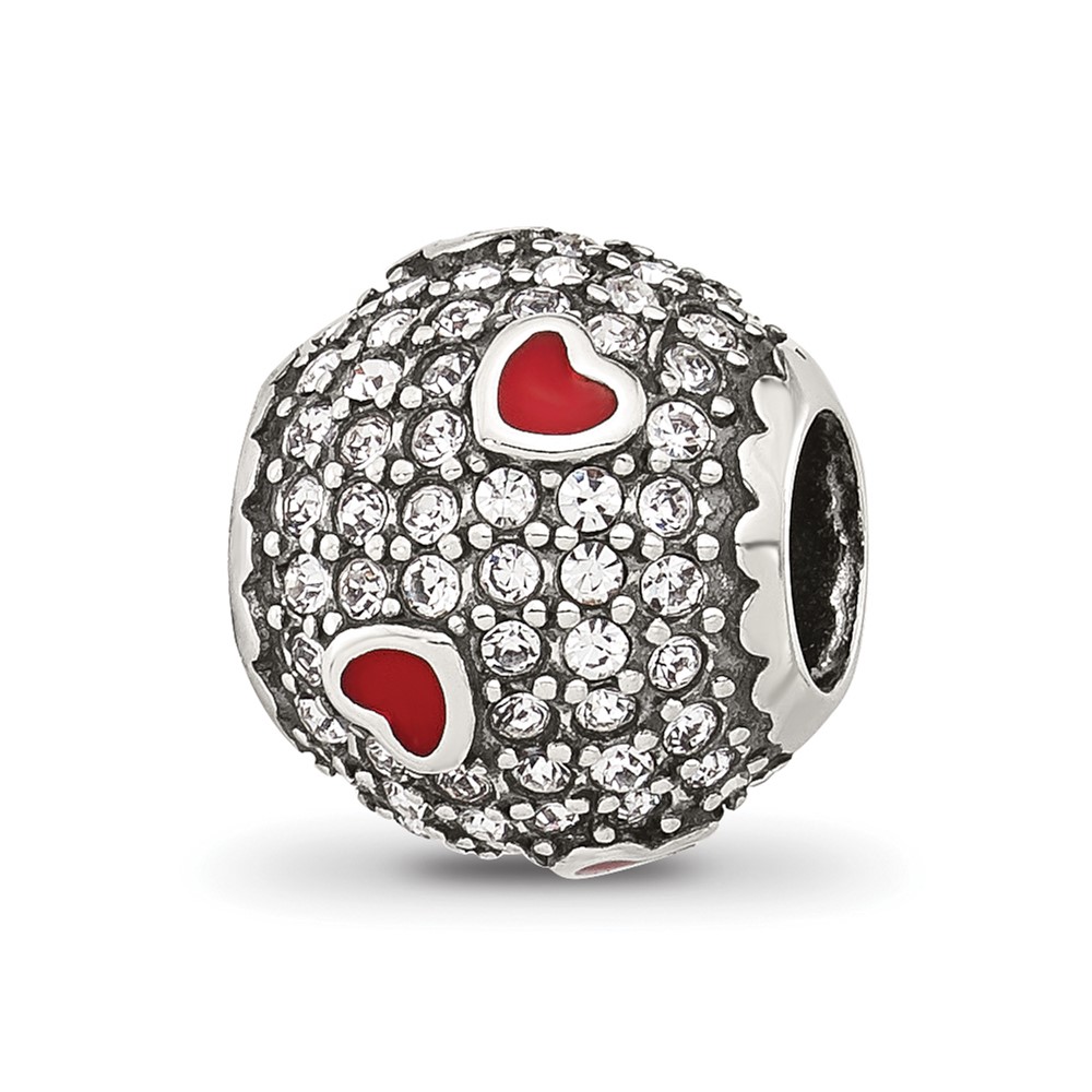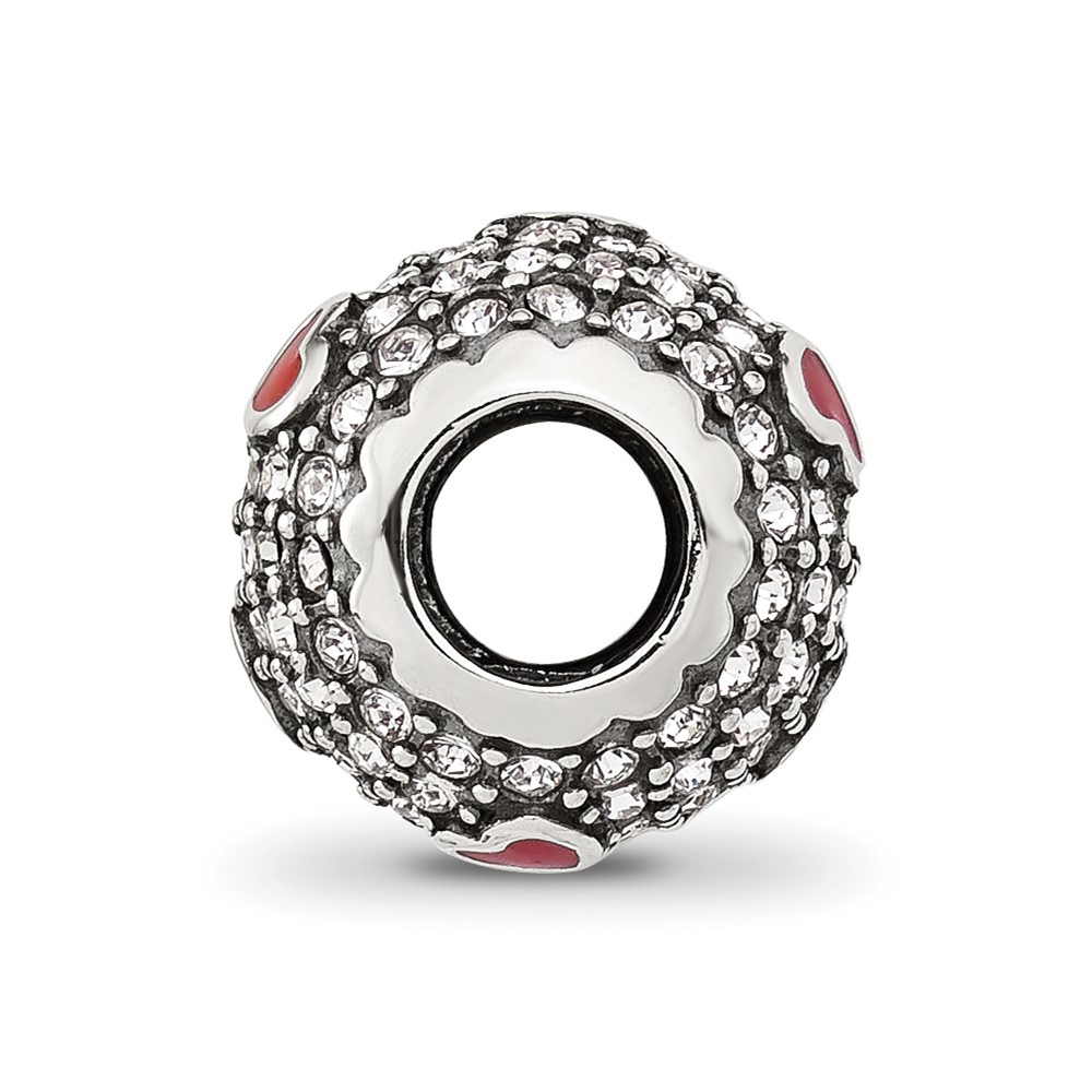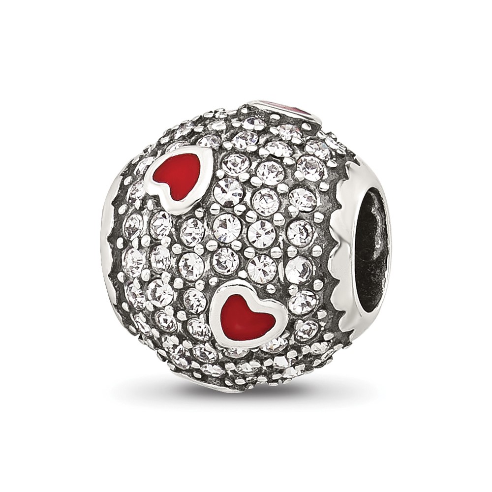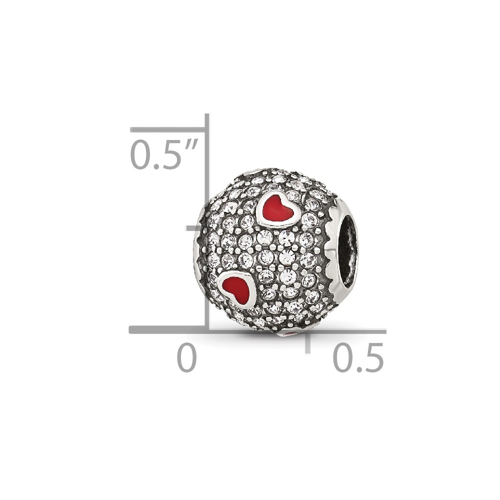 Sterling Silver Reflections CZ and Red Enamel Heart Round Bead