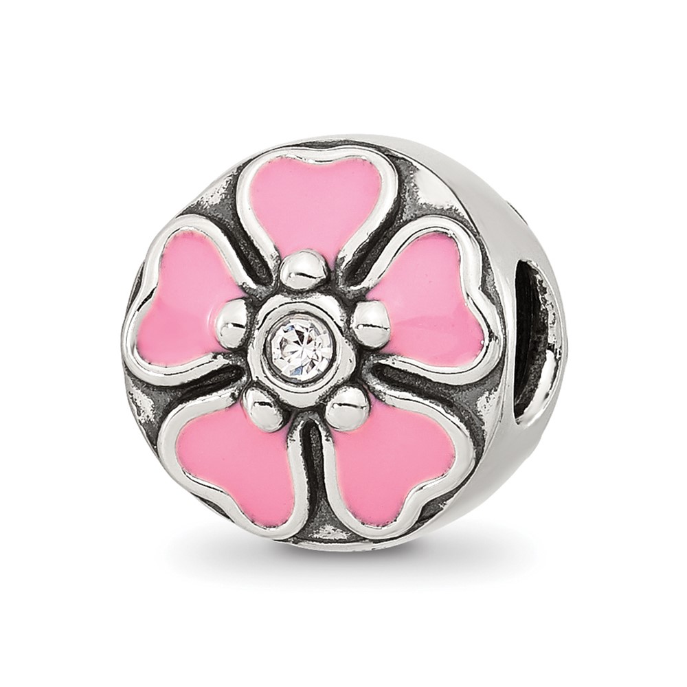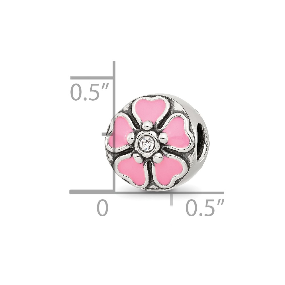 Sterling Silver Reflections Pink Enamel and CZ Flower Bead