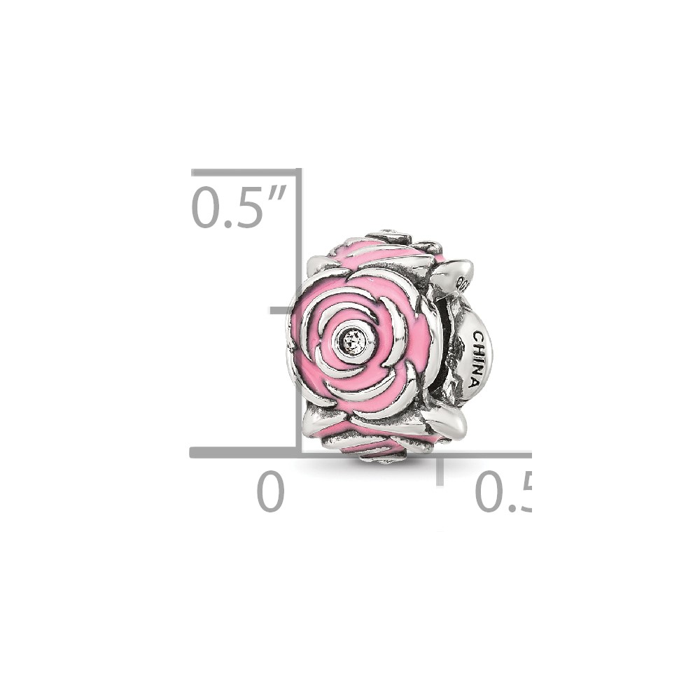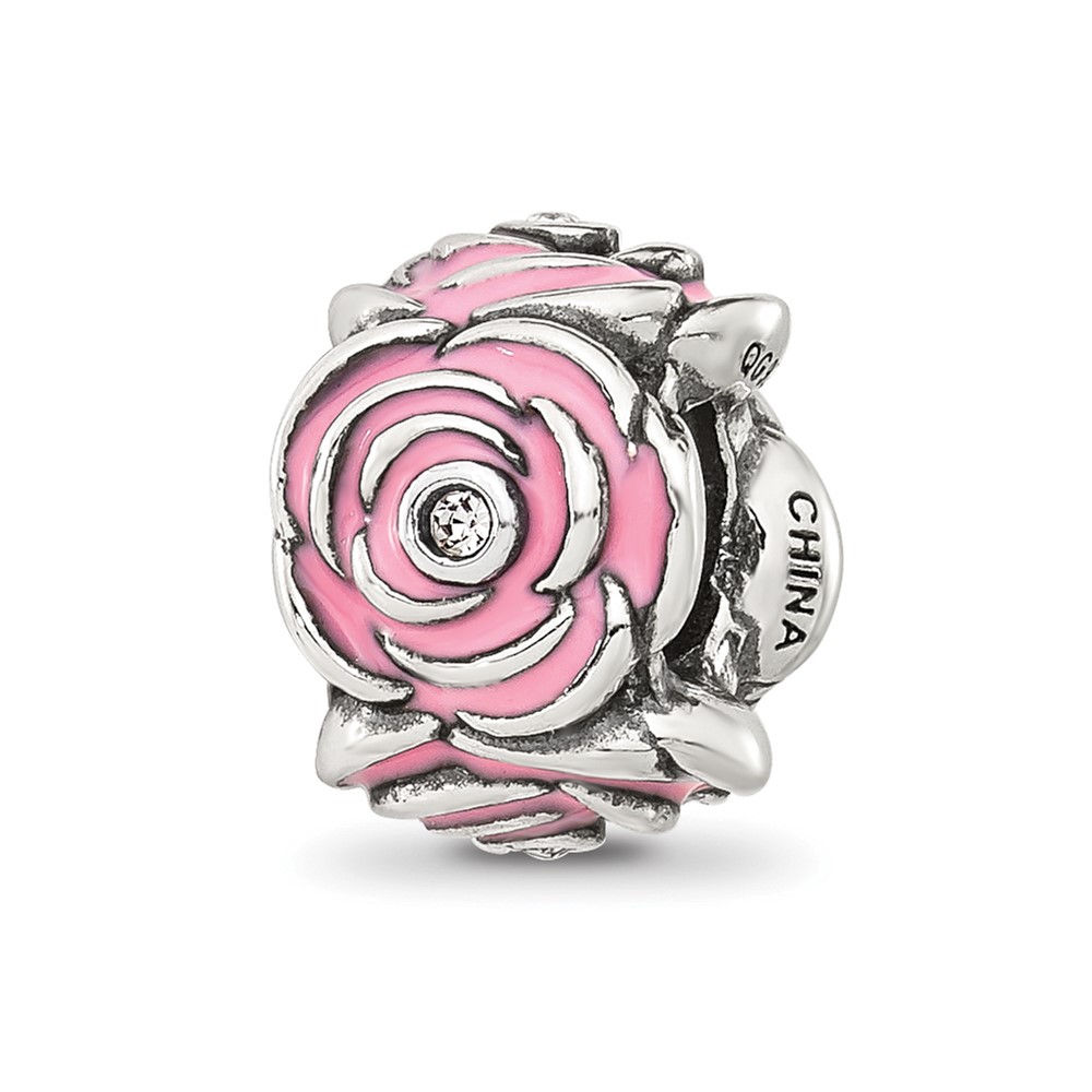 Sterling Silver Reflections Pink Enamel and CZ Floral Bead
