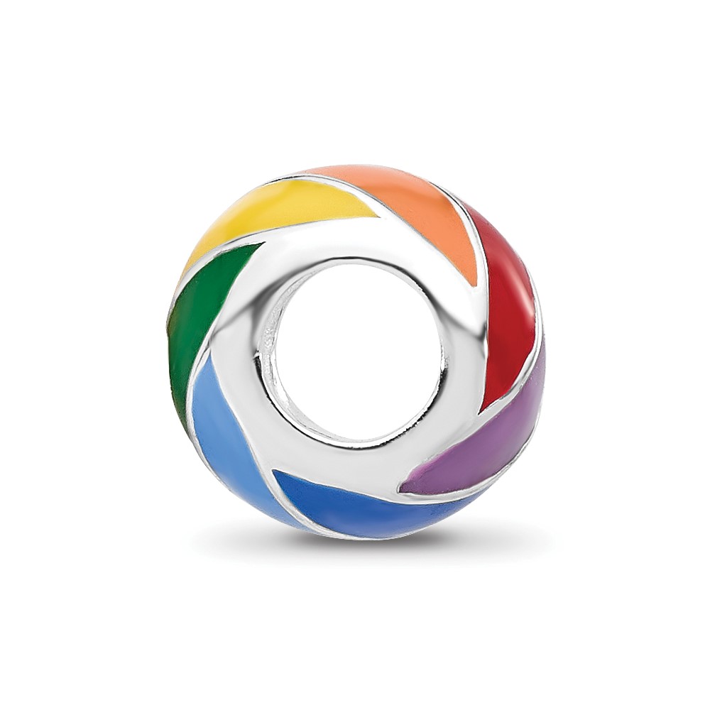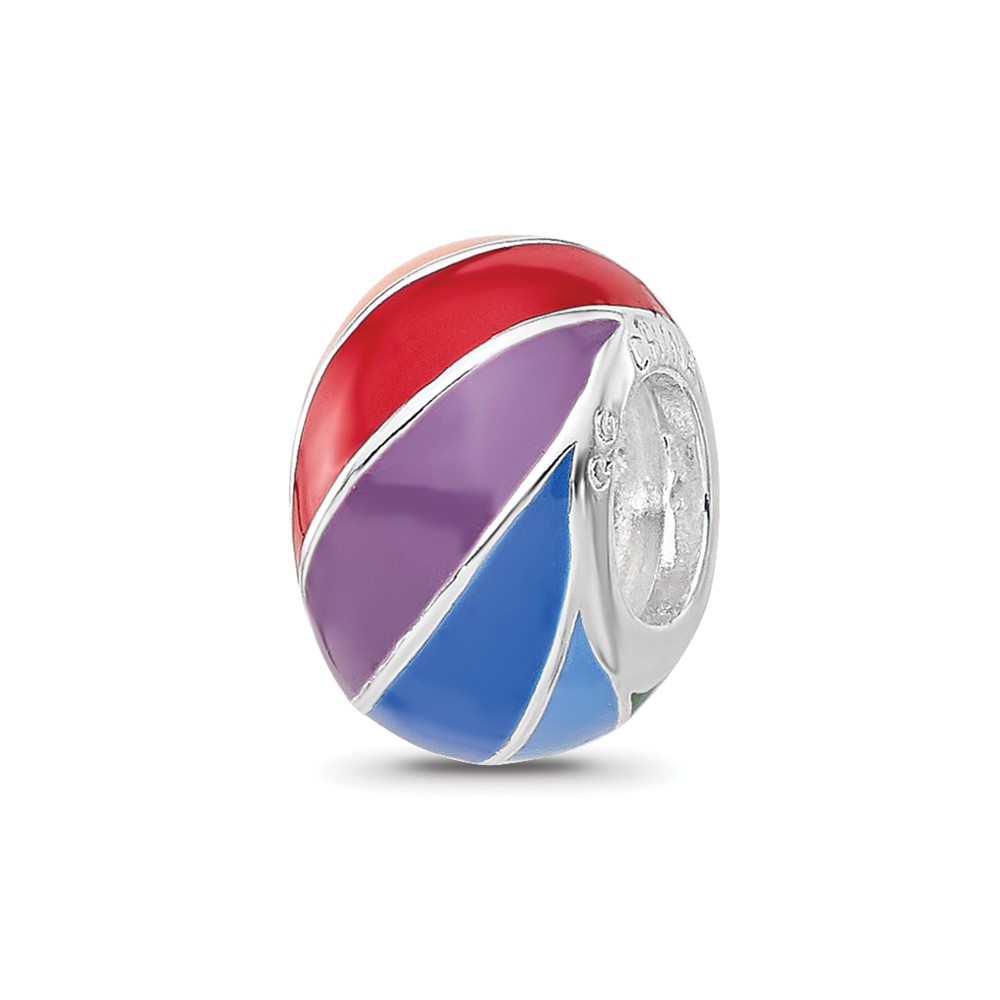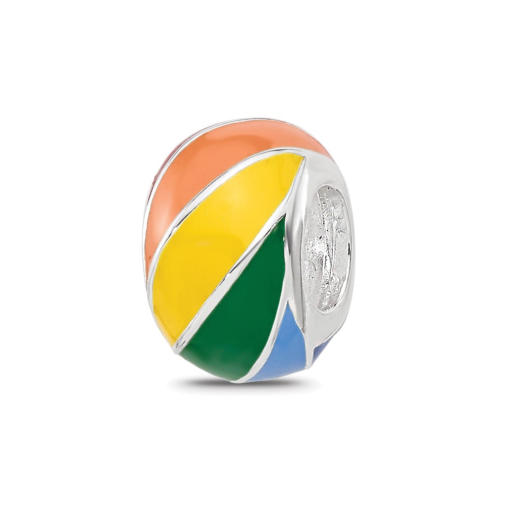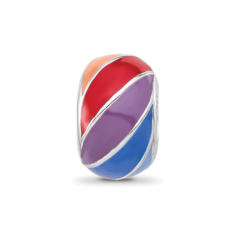 Sterling Silver Reflections RH-plated Rainbow Enamel Round Bead