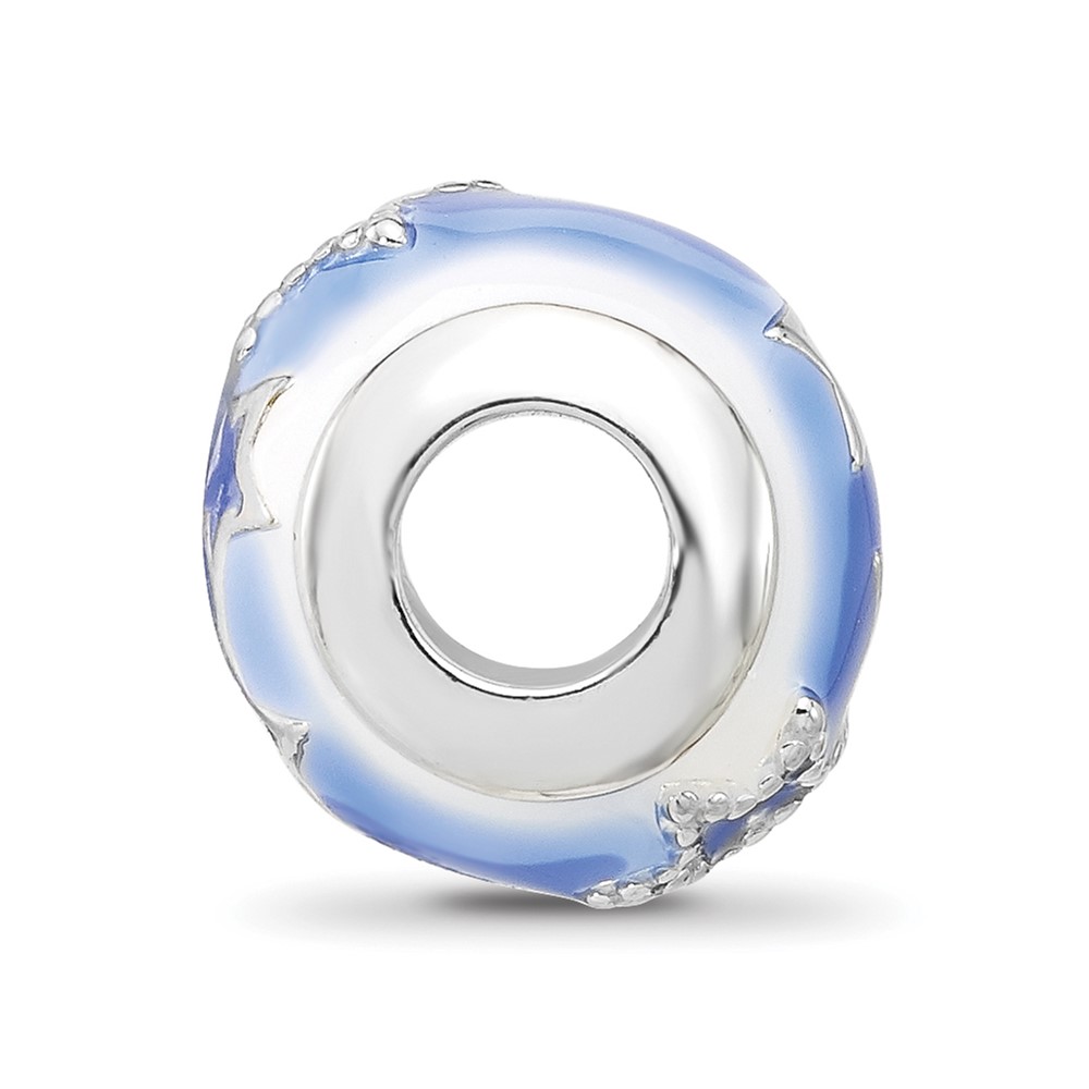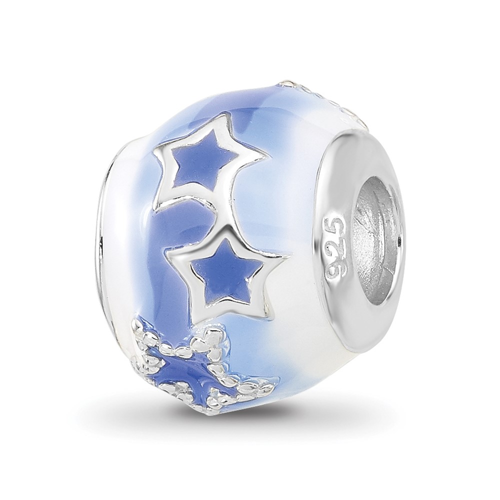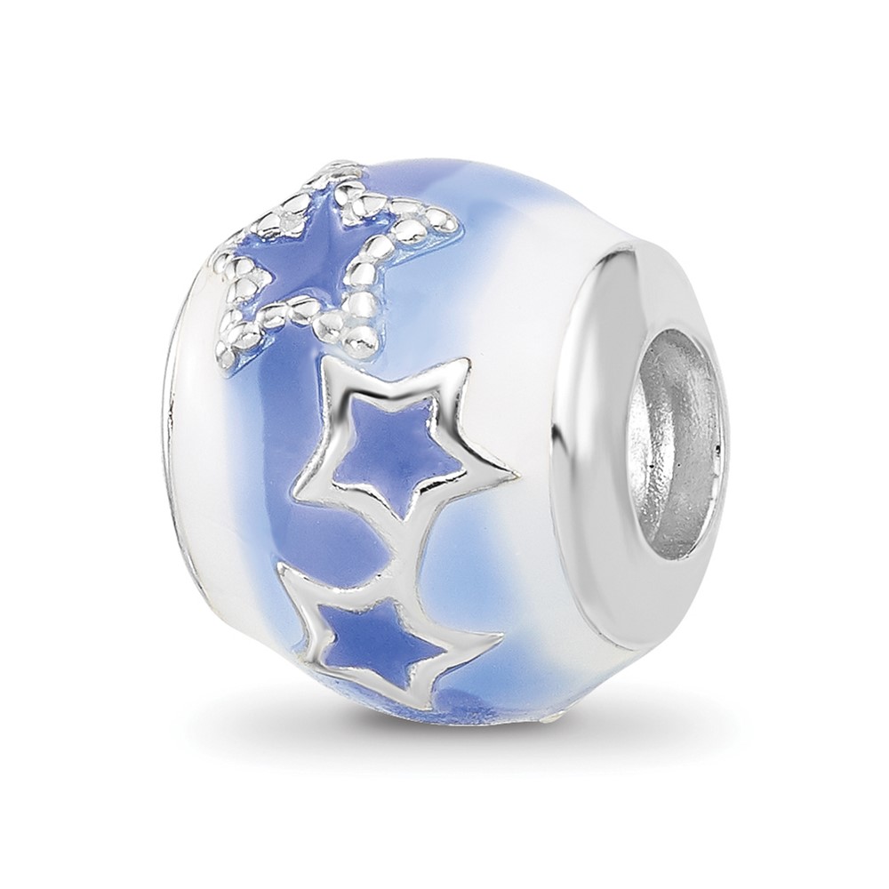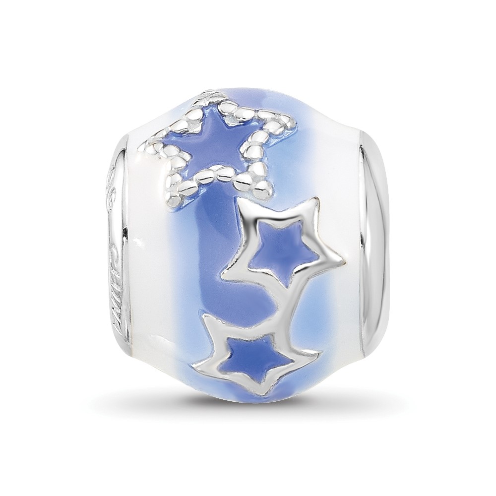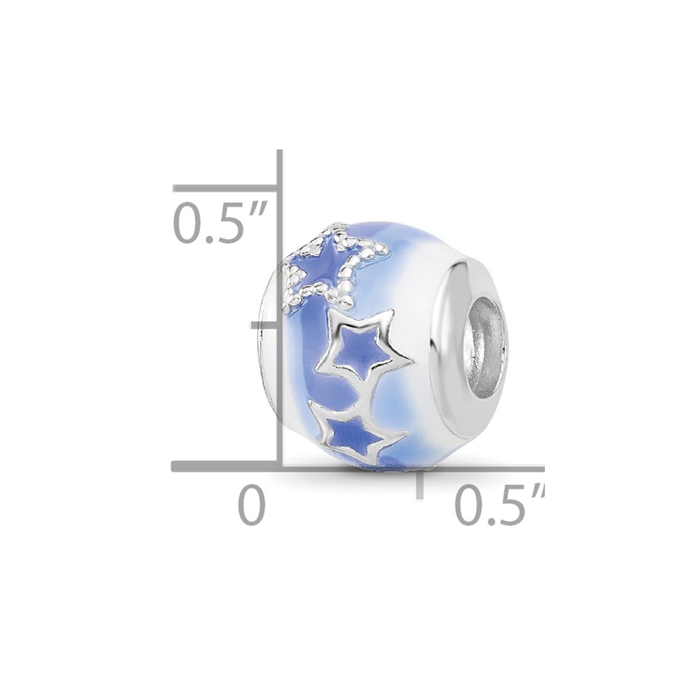 Sterling Silver Reflections Rh-plated Blue & White Enamel Stars Bead