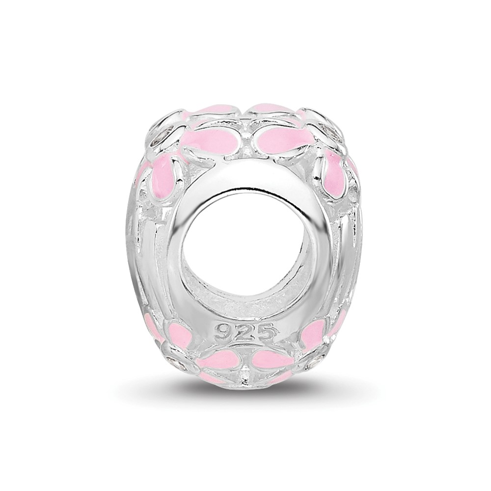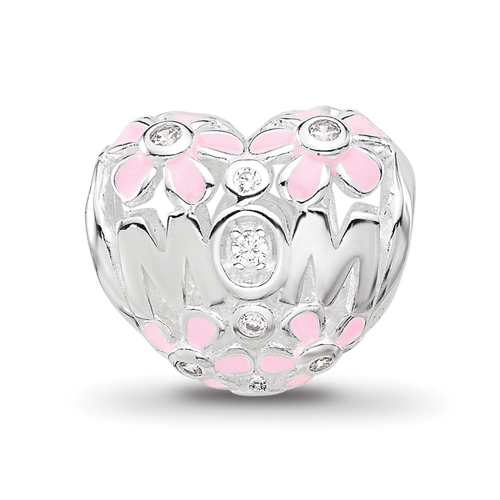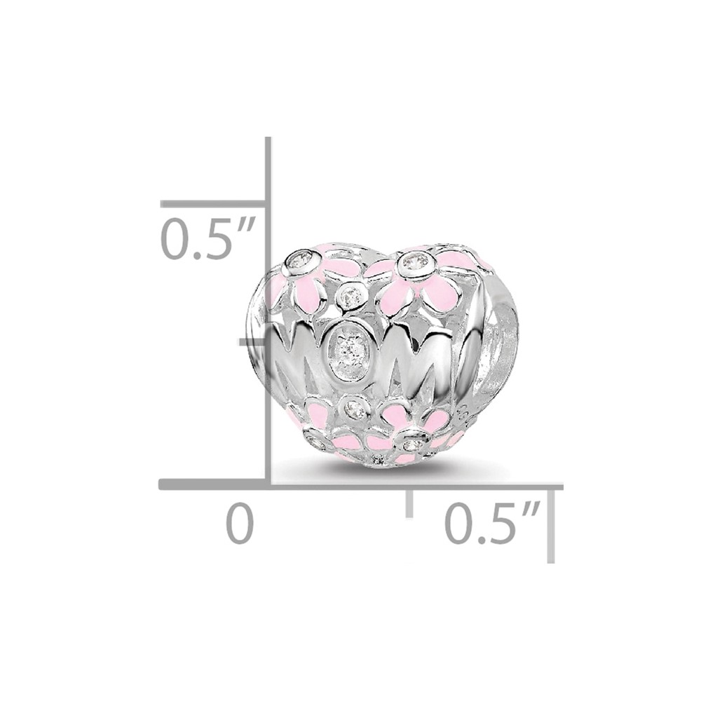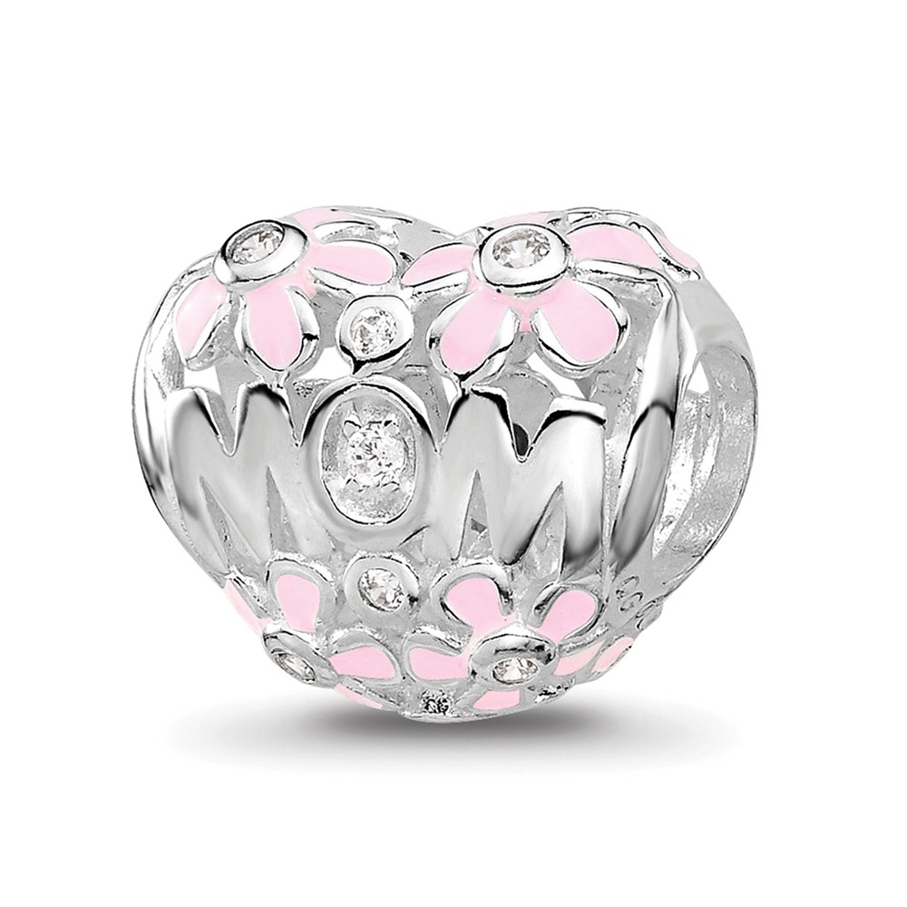 SS Reflections RH-plated Pink Enamel CZ Floral Mom Heart Bead
