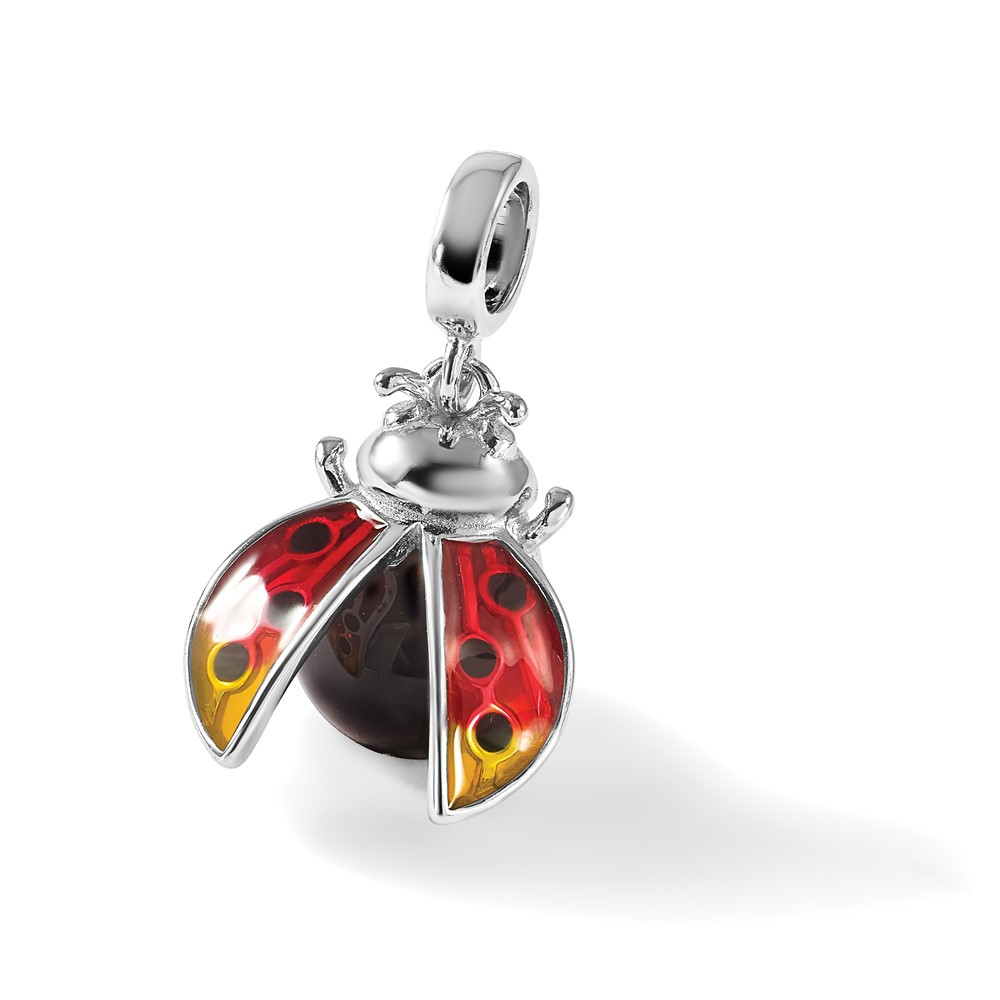 Sterling Silver Reflections Rh-plated Enameled Ladybug Dangle Bead