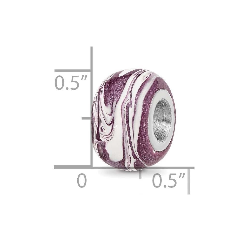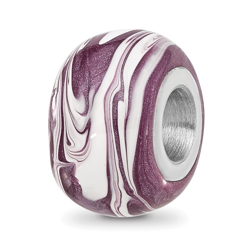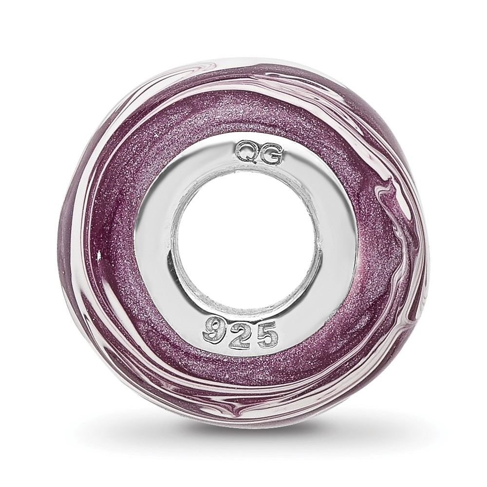 Sterling Silver Reflections Rhodium-plated Purple & White Enameled Bead