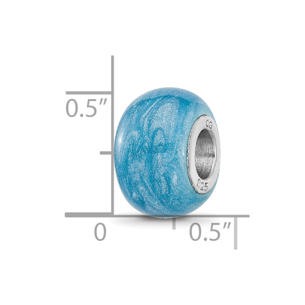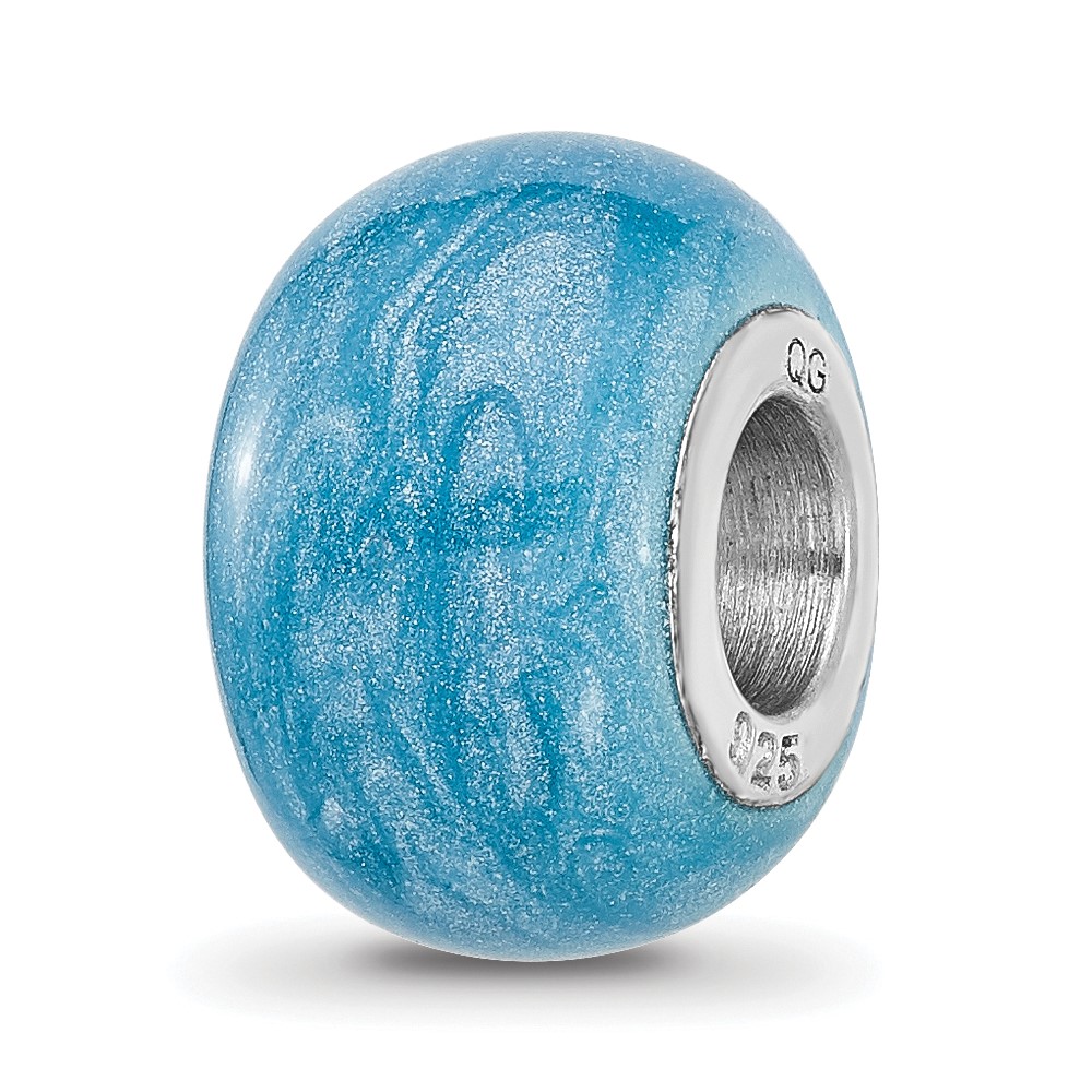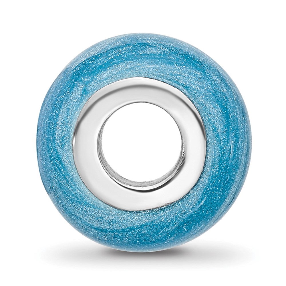 Sterling Silver Reflections Rhodium-plated Light Blue Shimmer Enamel Bead
