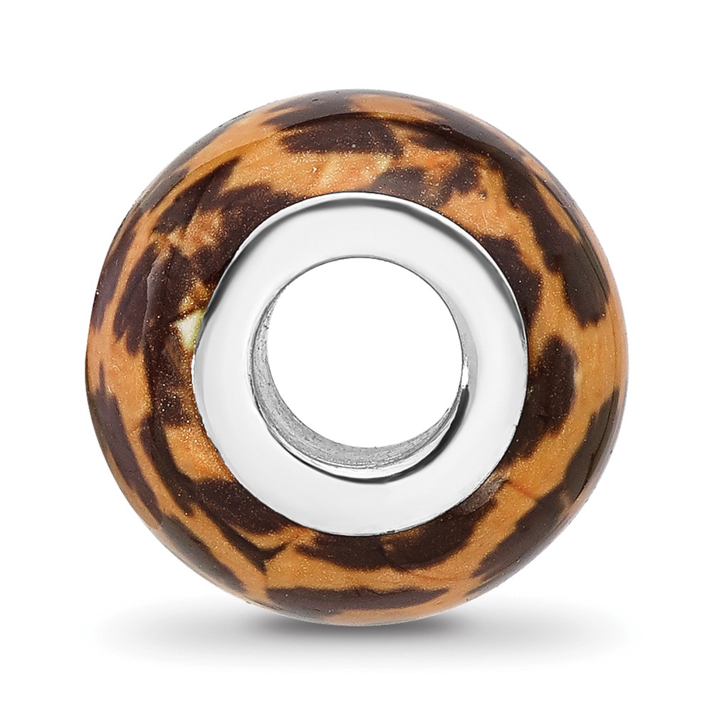Sterling Silver Reflections Rhodium-plated Leopard Foil Enamel Overlay Bead