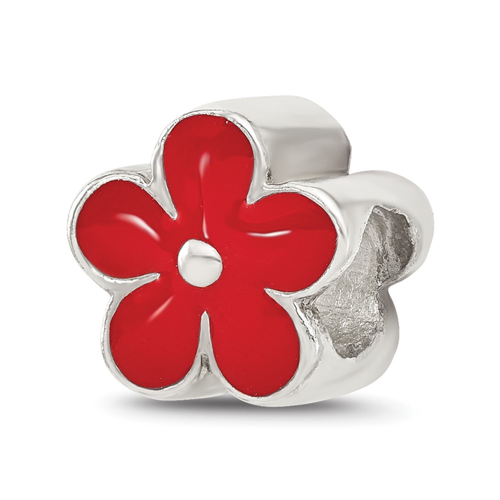 Sterling Silver Reflections Red Enameled Flower Bead