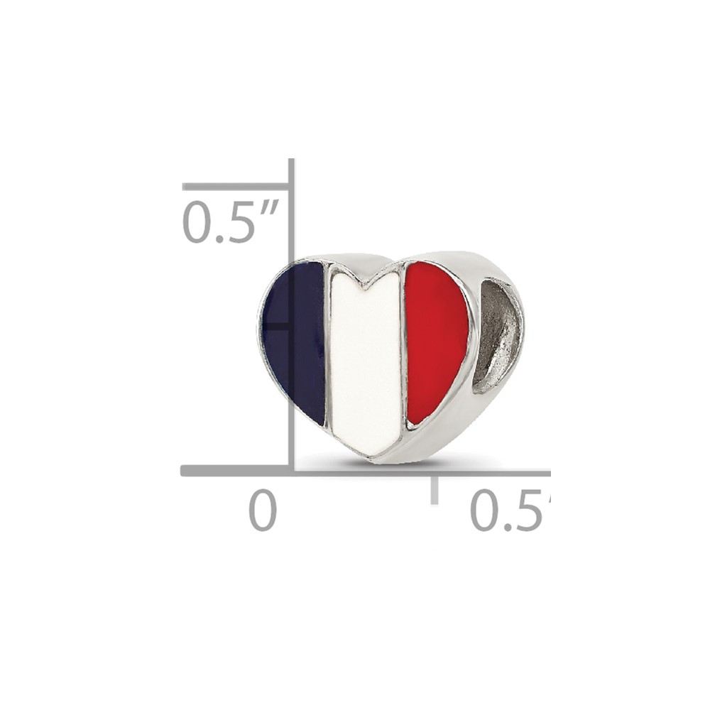 Sterling Silver Reflections French Enameled Flag Heart Shaped Bead