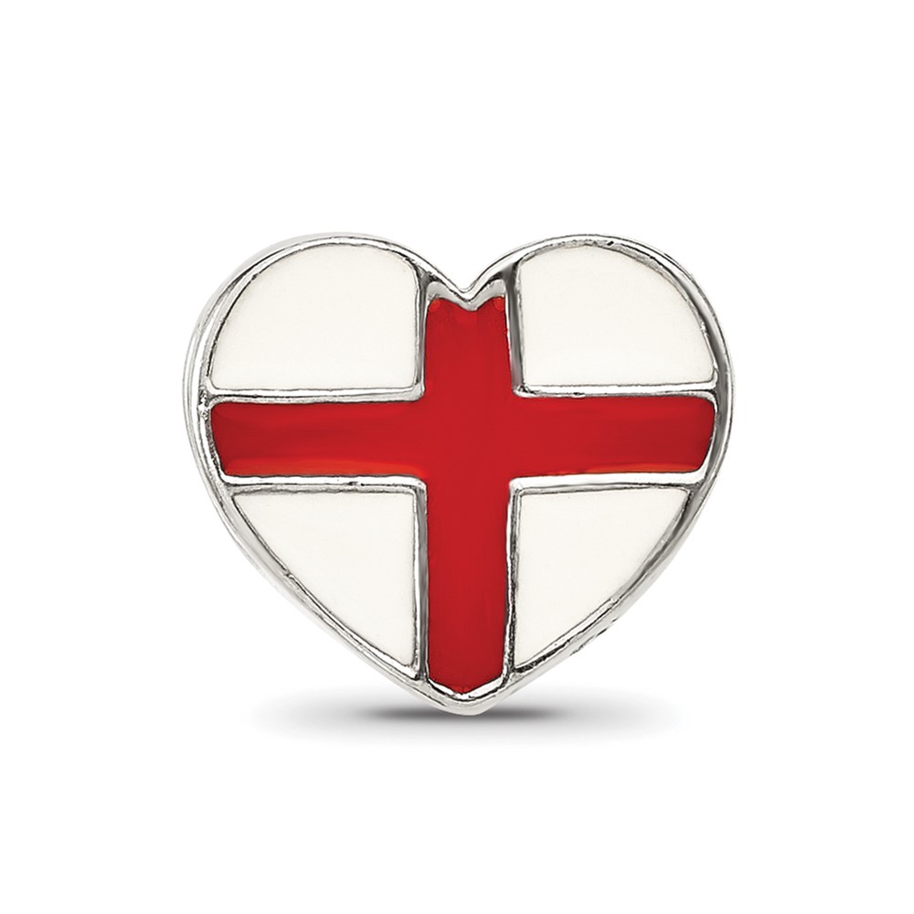 Sterling Silver Reflections Switzerland Enameled Flag Heart Shaped Bead