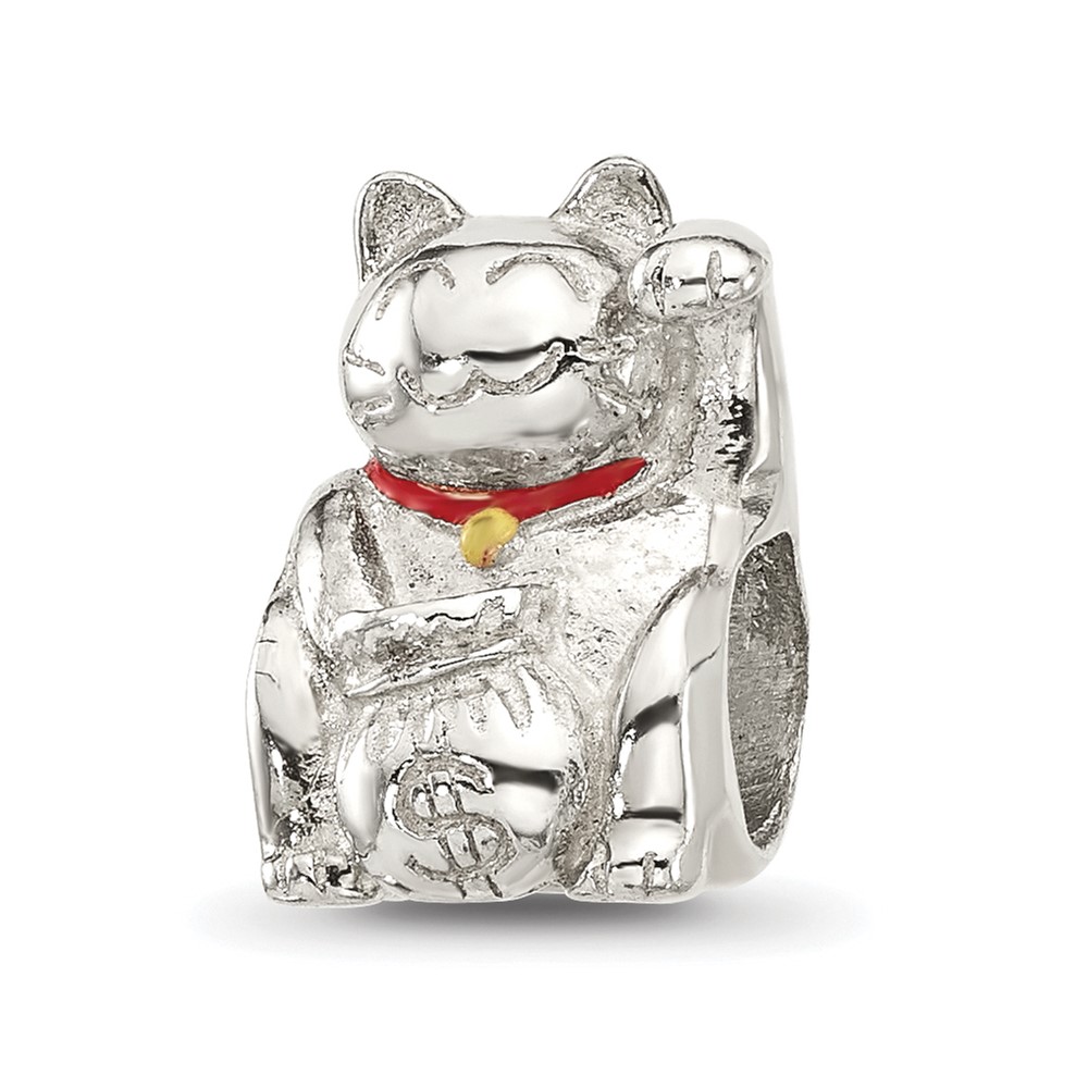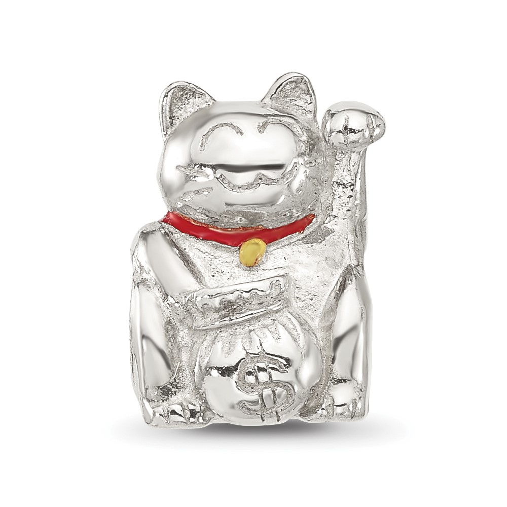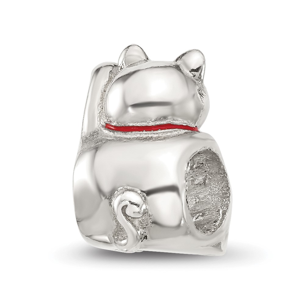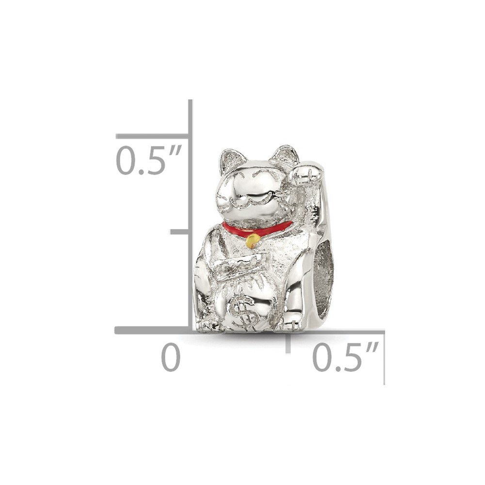 Sterling Silver Reflections Red Enameled Lucky Cat Bead