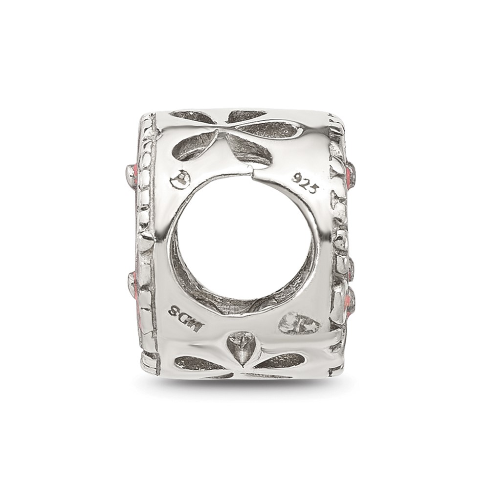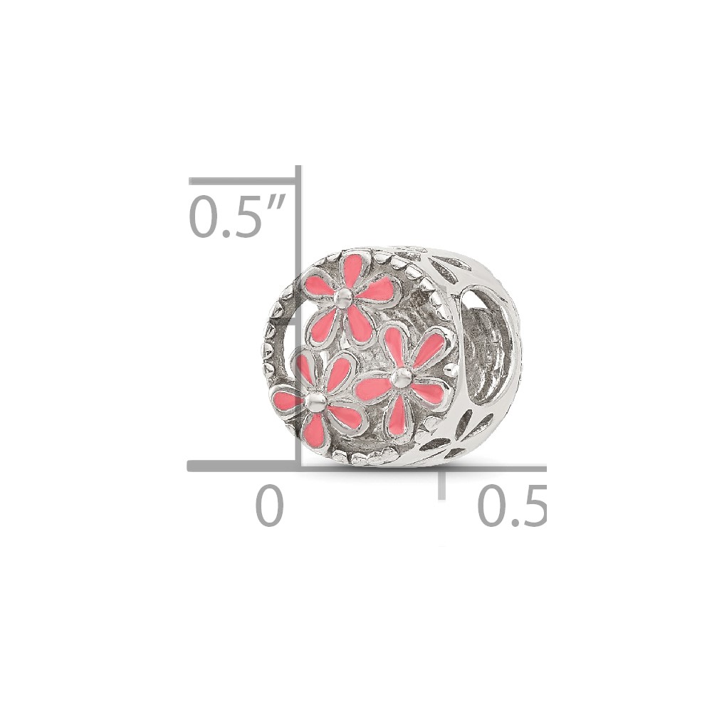 Sterling Silver Reflections Pink Enameled Floral Circle Bead